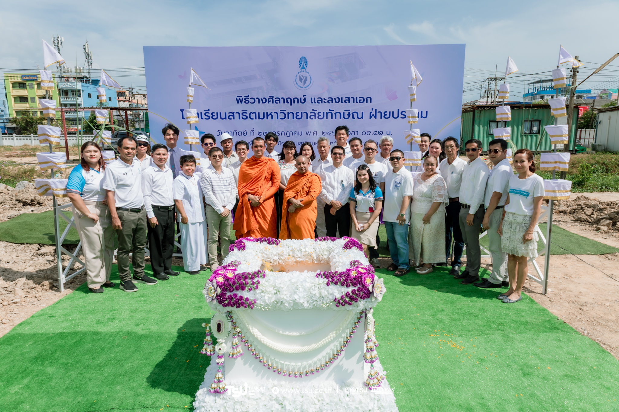 โรงเรียนสาธิตมหาวิทยาลัยทักษิณ ฝ่ายประถม นำโดยผู้ช่วยศาสตราจารย์ ดร.ศิลป์ชัย สุวรรณมณี รักษาการแทนผู้อำนวยการโรงเรียนฯ จัดพิธีวางศิลาฤกษ์และลงเสาเอก เพื่อความเป็นสิริมงคลมงคลในการก่อสร้าง โดยมีรองศาสตราจารย์ ดร.ณฐพงศ์ จิตรนิรัตน์ อธิการบดีมหาวิทยาลัยทักษิณ เป็นประธานในพิธี มีผู้บริหาร และบุคลากร เข้าร่วมพิธีวางศิลาฤกษ์อาคารโรงเรียนสาธิตมหาวิทยาลัยทักษิณ ฝ่ายประถม โดยถือฤกษ์งามยามดี เมื่อวันที่ 27 กรกฎาคม 2568 เวลา 09.42 น. ณ พื้นที่ก่อสร้างแห่งใหม่ของโรงเรียนสาธิตมหาวิทยาลัยทักษิณ ฝ่ายประถม