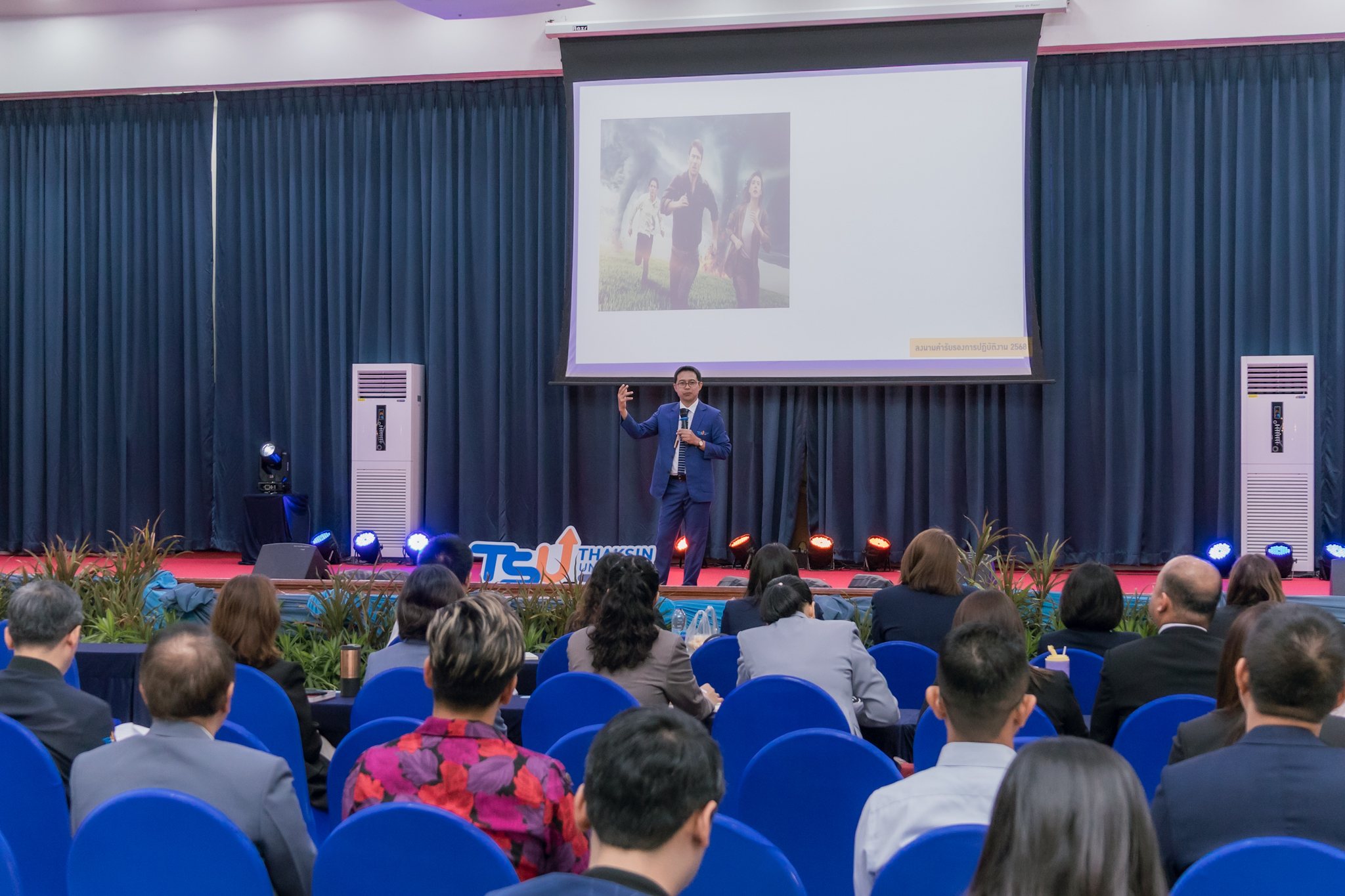 ในโอกาสนี้ รองศาสตราจารย์ ดร.ณฐพงศ์ จิตรนิรัตน์ อธิการบดี มหาวิทยาลัยทักษิณ ได้นำเสนอ “พลังความร่วมมือเพื่อการเปลี่ยนแปลงและมุ่งสู่เป้าหมายที่ท้าทาย : Collaborative Power for Change and Challenging Goals” ในการผสานพลังขับเคลื่อนมหาวิทยาลัยไปสู่เป้าหมายตามวิสัยทัศน์มุ่งสู่การเป็นมหาวิทยาลัยนวัตกรรมสังคมระดับแนวหน้าของประเทศ ภายในปี 2570 เพื่อให้การขับเคลื่อนมหาวิทยาลัยไปสู่เป้าหมายที่ท้าทายและเป็นไปได้ และสามารถบรรลุเป้าหมาย จึงได้นำแนวคิดและการปฏิบัติการ TSU Moonshot มาเป็นเครื่องมือในการขับเคลื่อน โดยกำหนดประเด็นเร่งด่วนที่จะบรรลุเป้าหมาย คือ