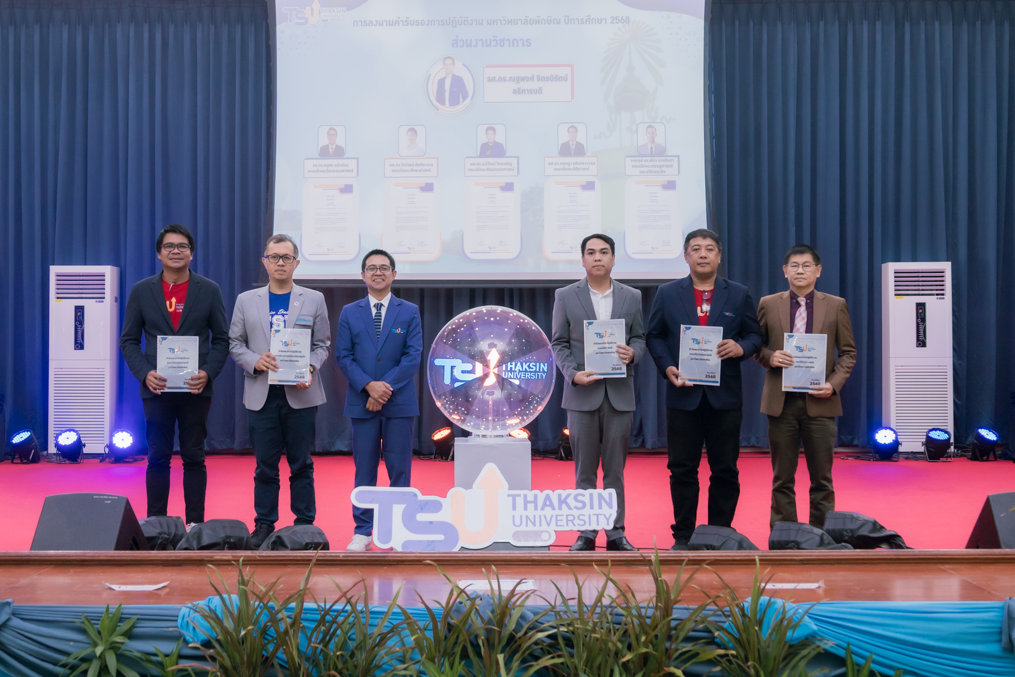 หลังจากบรรยายเสร็จ ได้มีการลงนามคำรับรองการปฏิบัติงานปีการศึกษา 2568 ระหว่างอธิการบดีกับหัวหน้าส่วนงานวิชาการ ส่วนงานอื่น จำนวน 26 หน่วยงาน ประกอบด้วยส่วนงานวิชาการ จำนวน 16 ส่วนงาน ส่วนงานอื่น จำนวน 5 ส่วนงาน และหน่วยงานบริหาร จำนวน 5 หน่วยงาน ณ หอประชุมปาริชาต มหาวิทยาลัยทักษิณ วิทยาเขตสงขลา