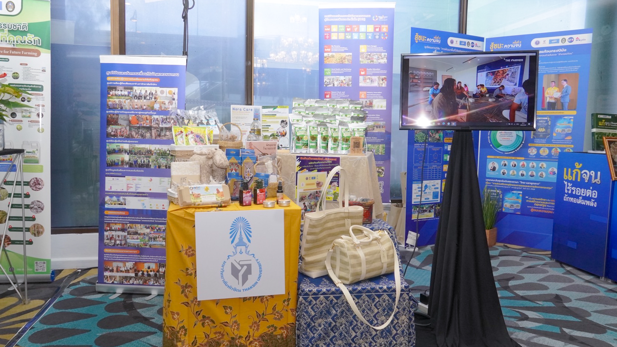 ภายในบูธ มหาวิทยาลัยทักษิณได้นำเสนอผลิตภัณฑ์ ที่เกิดจากชุดการวิจัยและการต่อยอดนวัตกรรม อาทิ "ปลาดุกร้าแก้จน", "ผักเหลียงอกกรอบ" จากโครงการเหลียงใบใหญ่โมเดลแก้จน, "ศรีนาคาโมเดล" ผ้ามัดย้อมและผ้าพิมพ์ลายด้วยสีจากวัสดุธรรมชาติ, ผลิตภัณฑ์สกินแคร์จากทรัพยากรท้องถิ่น ภายใต้แบรนด์ “บรรธารา” ของ TSU Enterprise