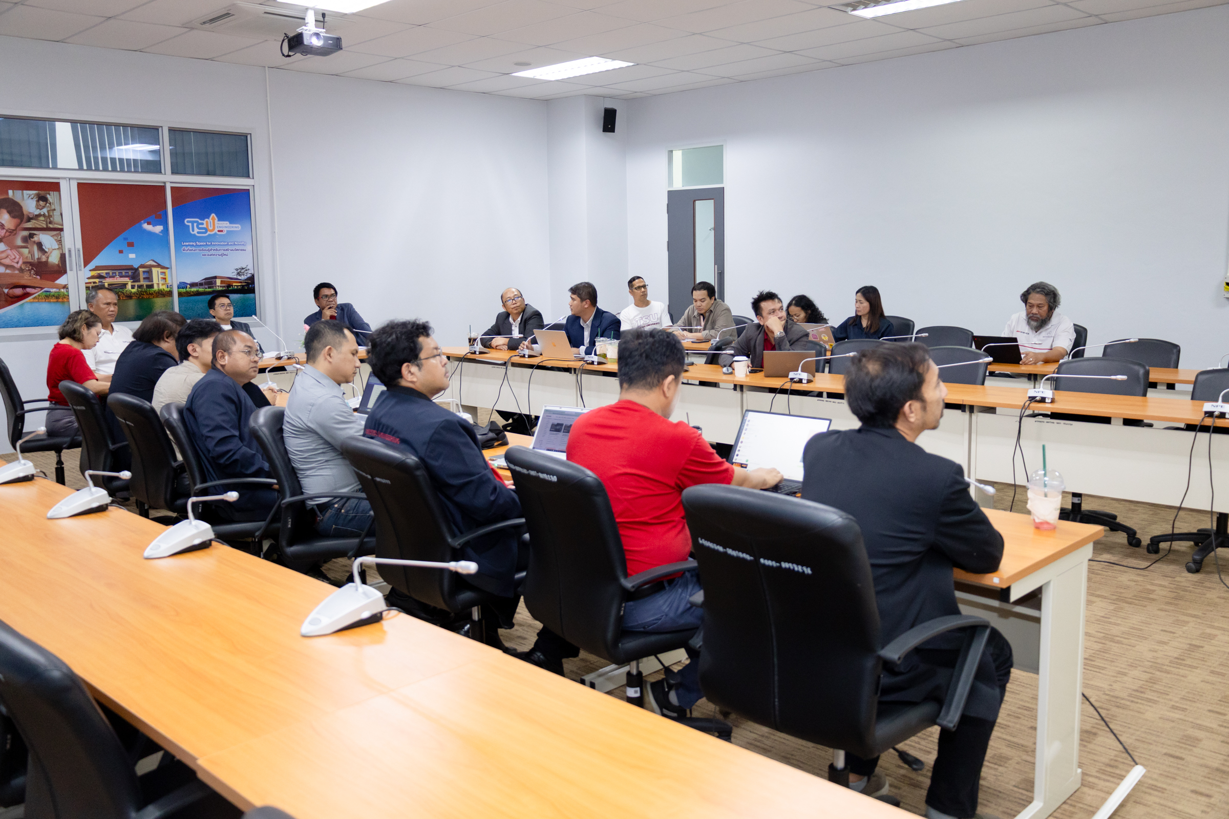 เพื่อผลักดันเป้าหมายดังกล่าวให้เกิดขึ้นอย่างเป็นรูปธรรม คณะวิศวกรรมศาสตร์จึงได้จัดประชุมหารือแนวทางความร่วมมือกับ ดร.อำพล อาภาธนากร ผู้อำนวยการฝ่ายส่งเสริมธุรกิจนวัตกรรม สำนักงานนวัตกรรมแห่งชาติ (องค์การมหาชน) หรือ NIA และ คณะทำงานโครงการพัฒนากำลังคนทักษะสูงเพื่อรองรับการพัฒนาอุตสาหกรรมยานยนต์สมัยใหม่ (EV) จากมหาวิทยาลัยเทคโนโลยีพระจอมเกล้าพระนครเหนือ (มจพ.) ได้แก่ รศ.ดร.ธวัชชัย วงศ์ช่าง, รศ.ดร.วัชรินทร์ โพธิ์เงิน และ ผศ.ดร.ชัยยุทธ์ สัมภวะคุปต์ ณ ห้องประชุม ชั้น 2 คณะวิศวกรรมศาสตร์ มหาวิทยาลัยทักษิณ วิทยาเขตพัทลุง