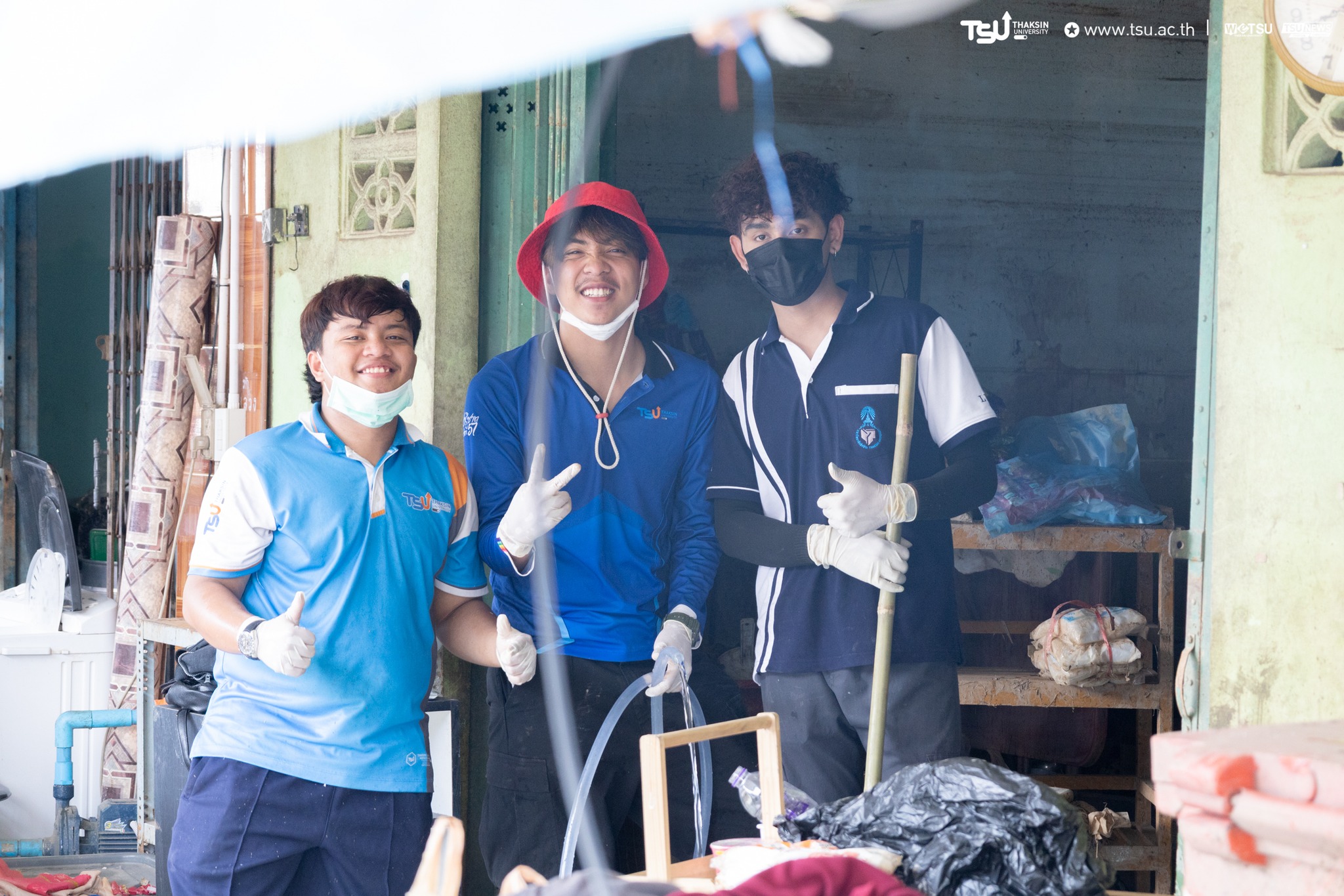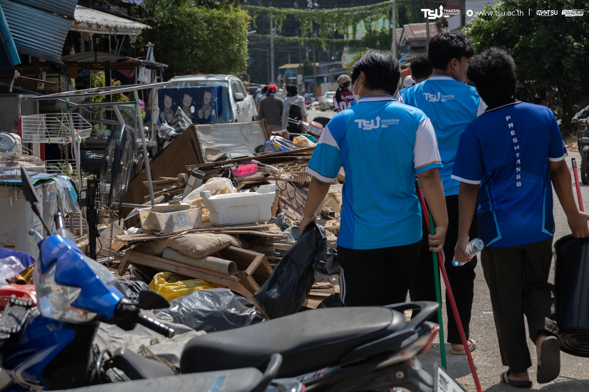 "TSU บวร Wash" จิตอาสาลงเคลียร์พื้นที่หลังน้ำลดร่วมกับท้องถิ่นและประชาชนเก็บกู้เศษวัสดุ เฟอร์นิเจอร์ที่ชำรุด ต้นไม้ล้ม ตะกอนดิน และทำความสะอาดพื้นที่สาธารณะ
