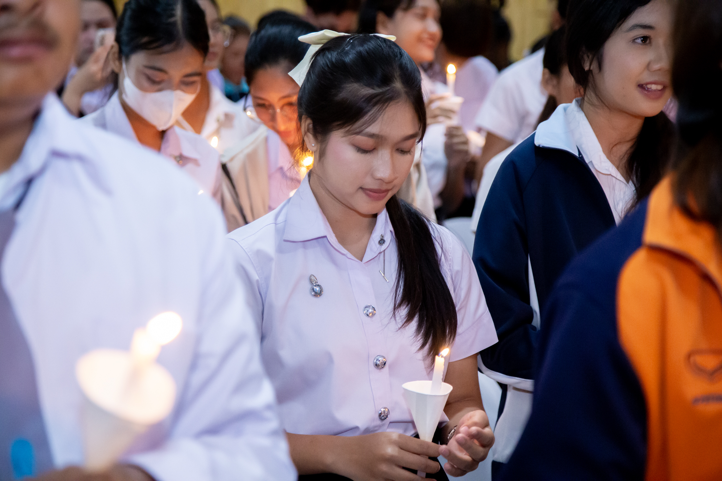 ช่วงค่ำ ผู้บริหาร บุคลากร นิสิต และประชาชนร่วมกันจัดเตรียมพื้นที่สำหรับประกอบพิธีจุดเทียนน้อมรำลึก ก่อนร่วมกันจุด “แสงเทียนแห่งความภักดี” ส่องสว่างไปทั่วบริเวณทักษิณาคาร เพื่อรำลึกในพระมหากรุณาธิคุณของในหลวงรัชกาลที่ 9 ท่ามกลางบรรยากาศที่สงบ งดงาม และเปี่ยมด้วยความสำนึกในพระมหากรุณาธิคุณอย่างหาที่สุดมิได้