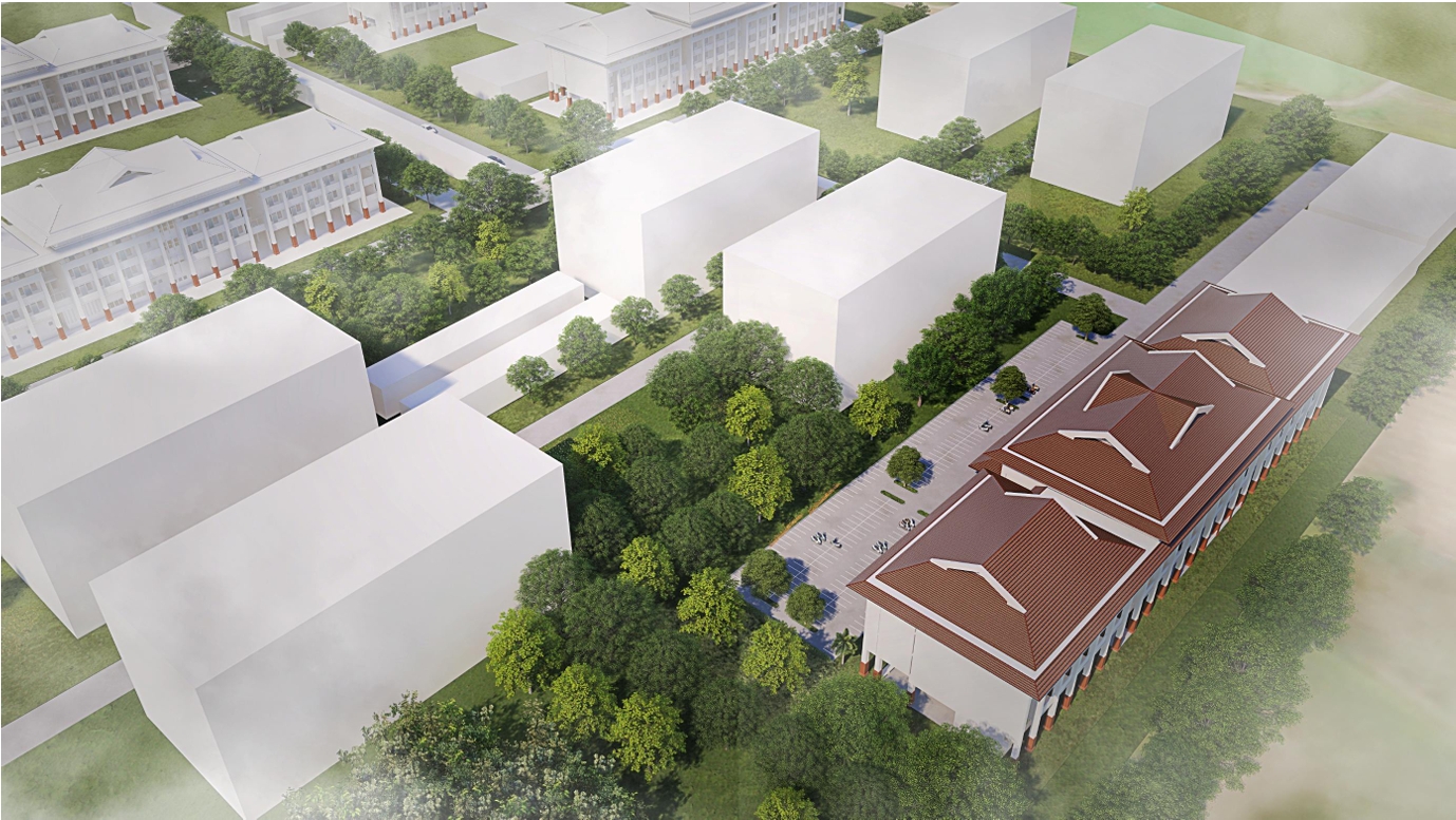 หอพักได้รับการออกแบบด้วยแนวคิด Thai Contemporary ผสมผสานเอกลักษณ์สถาปัตยกรรมไทยเข้ากับวัสดุและเทคโนโลยีสมัยใหม่ มีใต้ถุนสูงระบายอากาศดี ชายคายื่นลดแสงแดด หลังคามะนิลาระบายความร้อน และซุ้มทางเดินที่สร้างบรรยากาศโปร่งสบาย ทั้งหมดเป็นไปตามพ.ร.บ. หอพัก พ.ศ. 2558 และมาตรฐานอาคารอนุรักษ์พลังงาน
