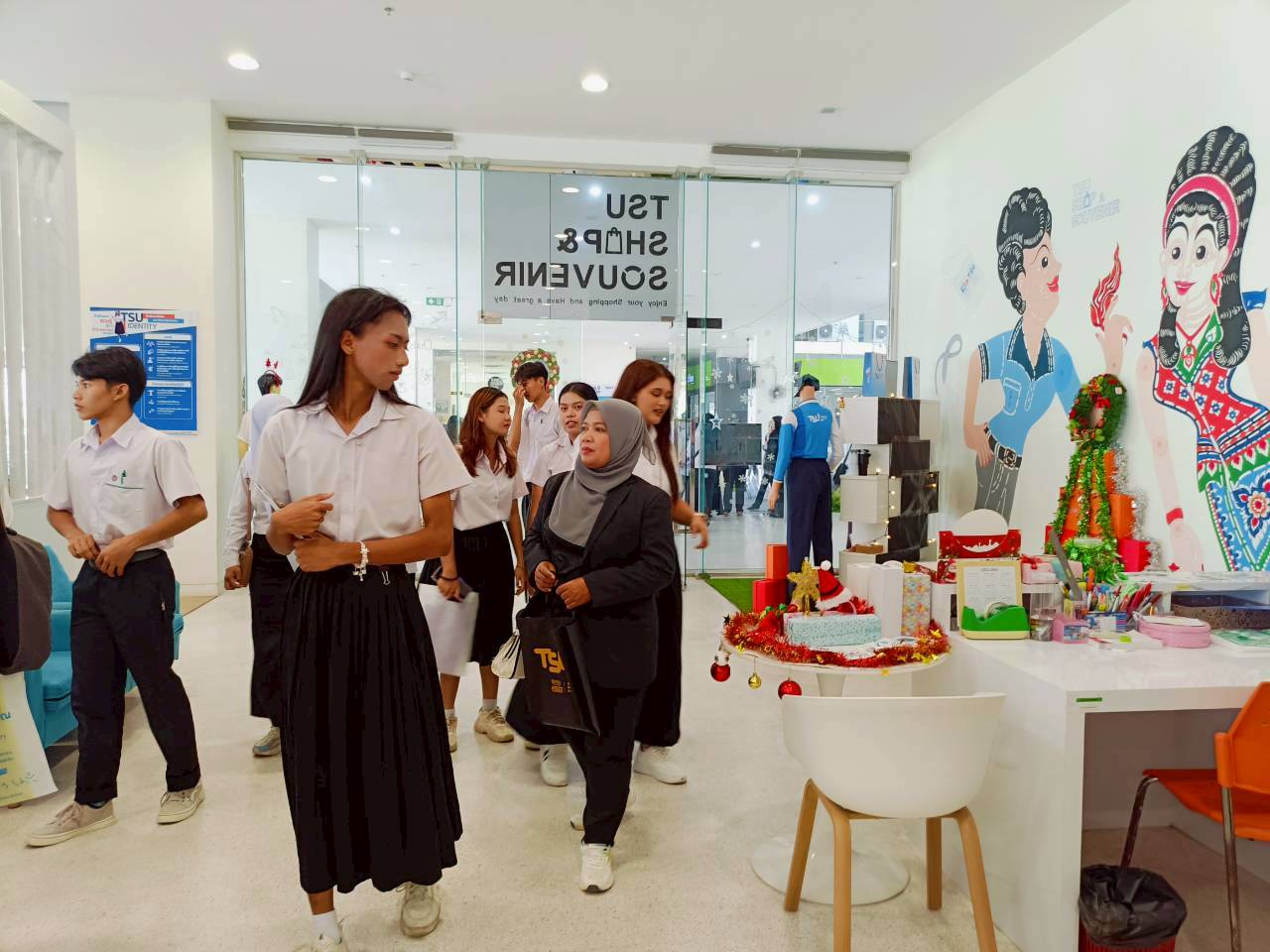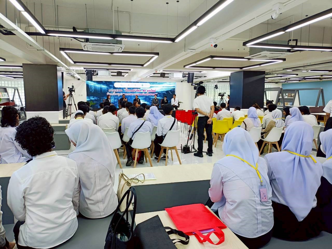 นอกจากนี้ คณะครูและนักเรียนได้เข้าร่วมรับฟังการเสวนาทางวิชาการในหัวข้อ “ปั้นคนดิจิทัล–AI ยุคใหม่ ขับเคลื่อนอุตสาหกรรมการแพทย์แห่งอนาคต” โดยวิทยากรผู้ทรงคุณวุฒิจากภาคการศึกษา ภาคสาธารณสุข และภาคเอกชน จัดโดยคณะวิทยาศาสตร์และนวัตกรรมดิจิทัล มหาวิทยาลัยทักษิณ เพื่อแลกเปลี่ยนมุมมอง แนวโน้ม และทิศทางการพัฒนาบุคลากรด้าน Medical Digital-AI อย่างรอบด้าน พร้อมทั้งเยี่ยมชมบูธนิทรรศการแนะนำ 2 หลักสูตรใหม่ และหลักสูตรอื่น ๆ ของคณะวิทยาศาสตร์และนวัตกรรมดิจิทัล ที่มุ่งตอบโจทย์ทักษะแห่งอนาคต สร้างโอกาสทางการศึกษาและอาชีพในอุตสาหกรรมการแพทย์และเทคโนโลยีดิจิทัล และได้เยี่ยมชมห้องจัดแสดงนิทรรศการศิลปวัฒนธรรมท้องถิ่นภาคใต้ สถาบันทักษิณคดีศึกษา ณ บริเวณชั้น 1 อาคารสถาบันทรัพยากรการเรียนรู้และเทคโนโลยีดิจิทัล มหาวิทยาลัยทักษิณ วิทยาเขตสงขลา ช่วยสร้างแรงบันดาลใจในการศึกษาต่อในสถาบันอุดมศึกษาให้แก่นักเรียน