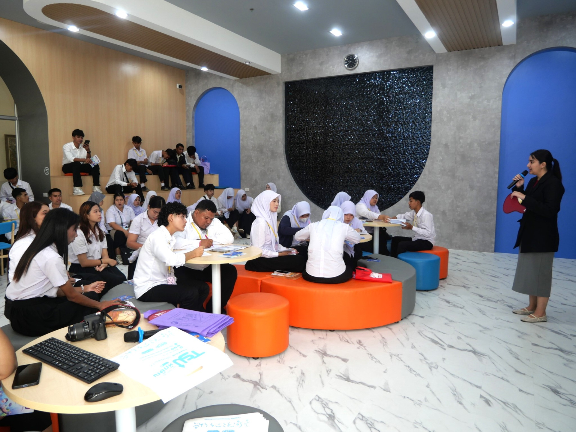 วันที่ 15 มกราคม 2569 มหาวิทยาลัยทักษิณ โดยงานสื่อสารองค์กรร่วมกับคณะต่าง ๆ ในวิทยาเขตสงขลา ร่วมให้การต้อนรับคณะครูและนักเรียนศูนย์ส่งเสริมการเรียนรู้ระดับอำเภอสุไหงโก-ลก และศูนย์ส่งเสริมการเรียนรู้ระดับอำเภอตากใบ จำนวน 88 คน โดยอาจารย์ญาณิศา เรืองฤทธิ์ อาจารย์ประจำหลักสูตรการจัดการประกอบการทางสังคม วิทยาลัยการจัดการเพื่อการพัฒนา มหาวิทยาลัยทักษิณ กล่าวต้อนรับ พร้อมแนะนำแนวทางการจัดทำพอร์ตโฟลิโอเพื่อการสมัครเรียนในมหาวิทยาลัยทักษิณ ต่อด้วยการแนะนำหลักสูตรที่เปิดสอน โดยคณะมนุษยศาสตร์และสังคมศาสตร์ วิทยาลัยนานาชาติ และคณะศึกษาศาสตร์ ณ ห้อง Co-Working Space ชั้น 1 อาคาร 50 ปี มหาวิทยาลัยทักษิณ วิทยาเขตสงขลา