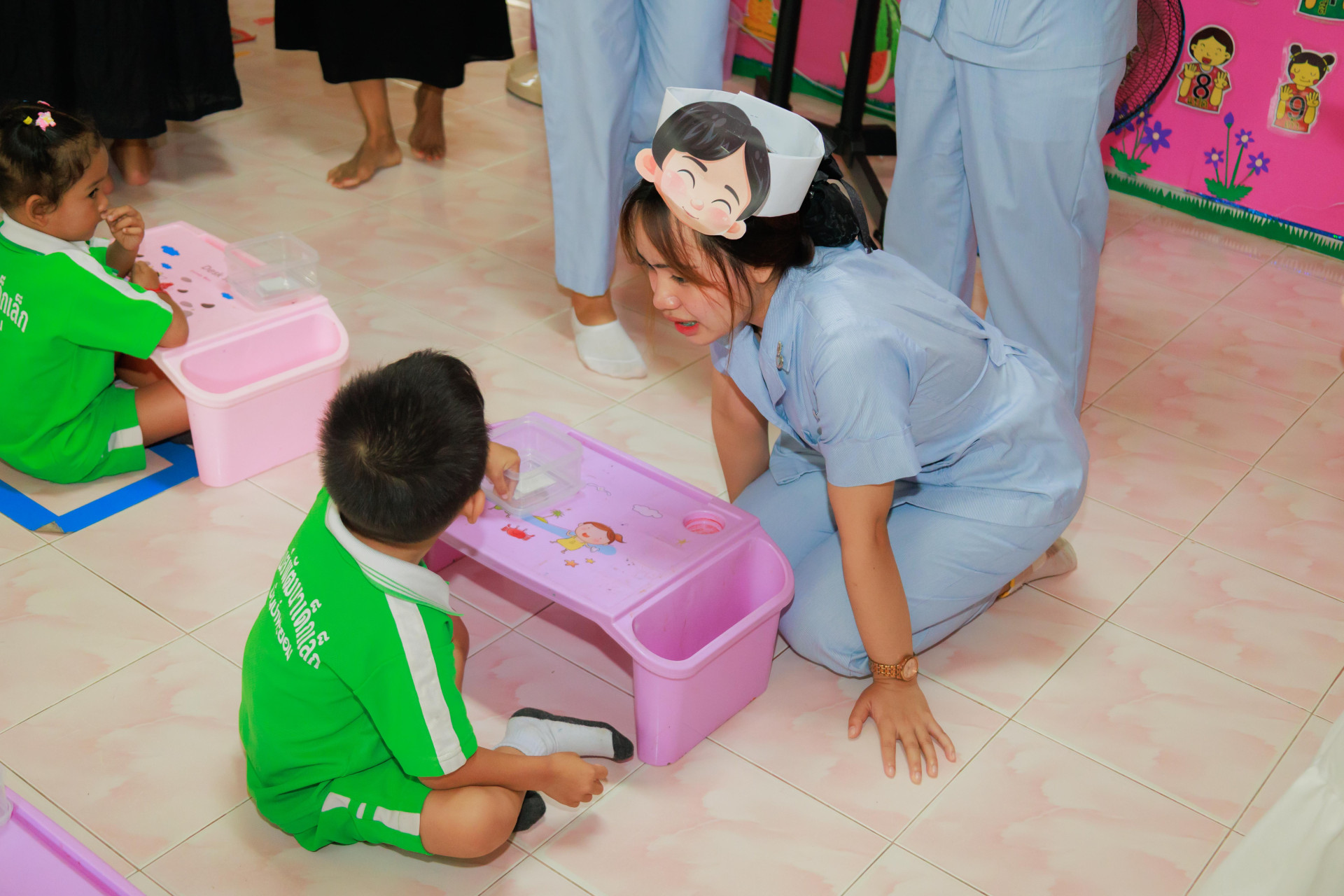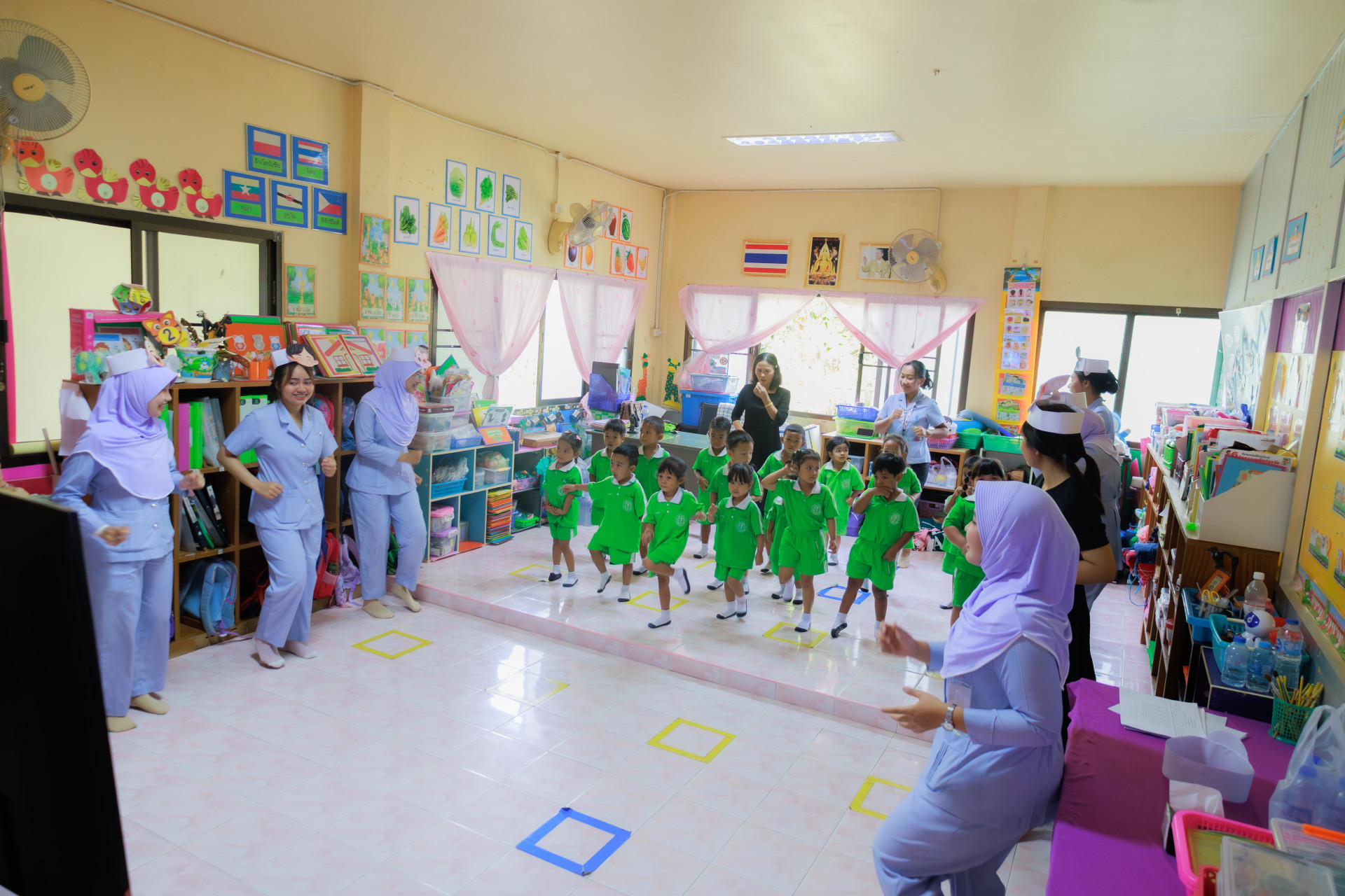 นิสิตพยาบาลศาสตร์ มหาวิทยาลัยทักษิณ นำความรู้สู่การปฏิบัติจริง ลงพื้นที่จัดกิจกรรมสร้างเสริมสุขภาพให้เด็กปฐมวัย ที่ศูนย์พัฒนาเด็กเล็กบ้านป่าพะยอม อำเภอป่าพะยอม จังหวัดพัทลุง ภายใต้รายวิชา "ปฏิบัติการพยาบาลเพื่อสร้างเสริมสุขภาพ" เชื่อมโยงห้องเรียนสู่ชุมชน พัฒนาทักษะการทำงานในอนาคต