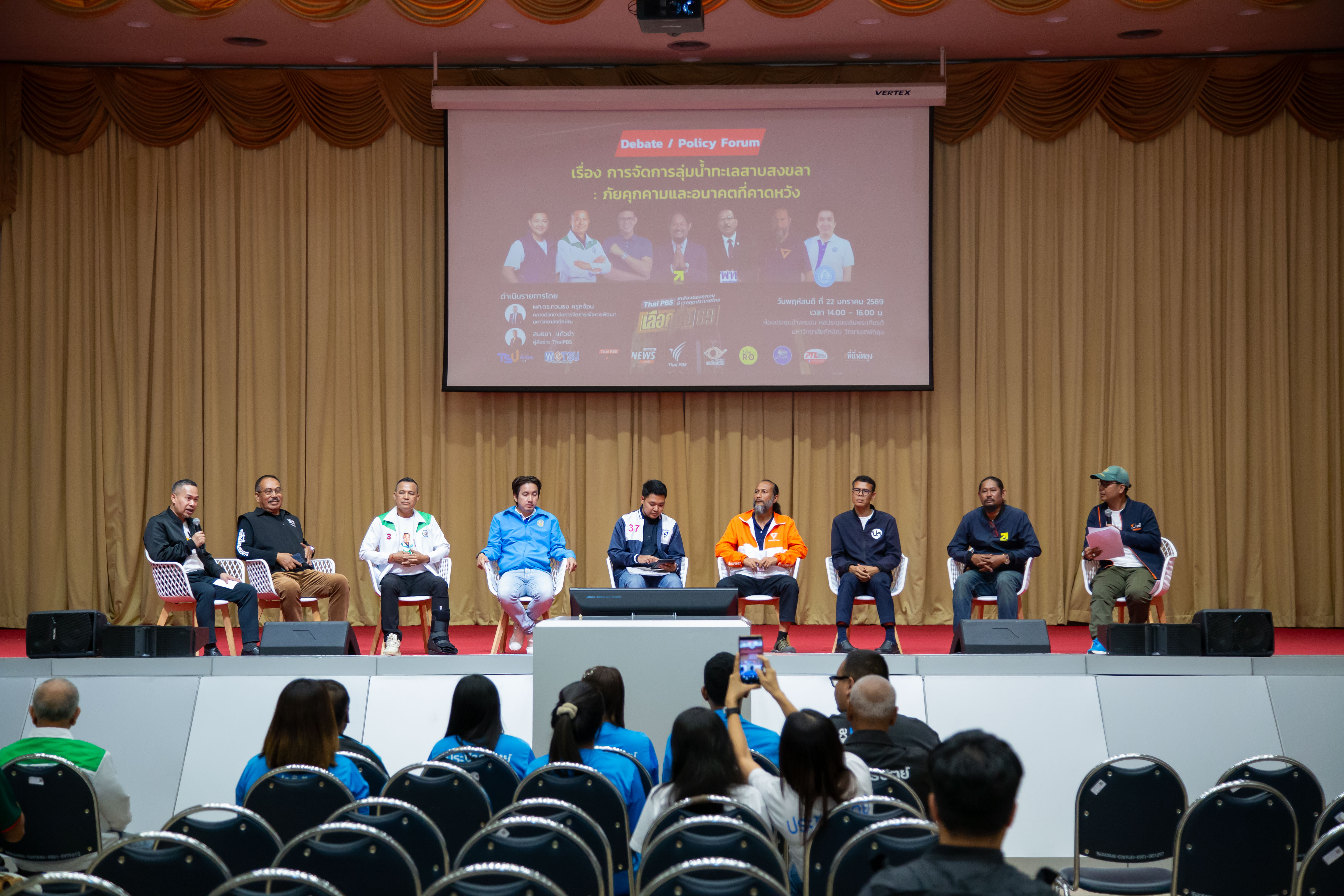 มหาวิทยาลัยทักษิณ ร่วมกับ Thai PBS ศูนย์ข่าวภาคใต้ และภาคีเครือข่ายสื่อสาธารณะ จัดเวทีสาธารณะ (Debate / Policy Forum) เรื่อง “การจัดการลุ่มน้ำทะเลสาบสงขลา : ภัยคุกคามและอนาคตที่คาดหวัง” เพื่อเปิดพื้นที่กลางให้พรรคการเมือง ภาควิชาการ ภาคประชาชน และสื่อมวลชน ร่วมแลกเปลี่ยนมุมมองและนำเสนอนโยบายด้านการจัดการทรัพยากรธรรมชาติอย่างรอบด้าน