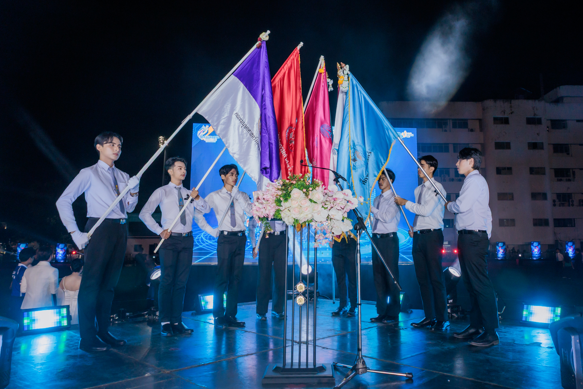 บรรยากาศในพิธีเปิดเริ่มต้นด้วยความตื่นตาตื่นใจของขบวนพาเหรดจากคณะต่างๆ ที่มาในธีม Sustain the Game. Innovate the World. Shape the Future. โดยแต่ละคณะได้สร้างสรรค์ชุดและอุปกรณ์ประกอบขบวนที่สะท้อนถึงเอกลักษณ์ของตนเองควบคู่ไปกับแนวคิดความยั่งยืน