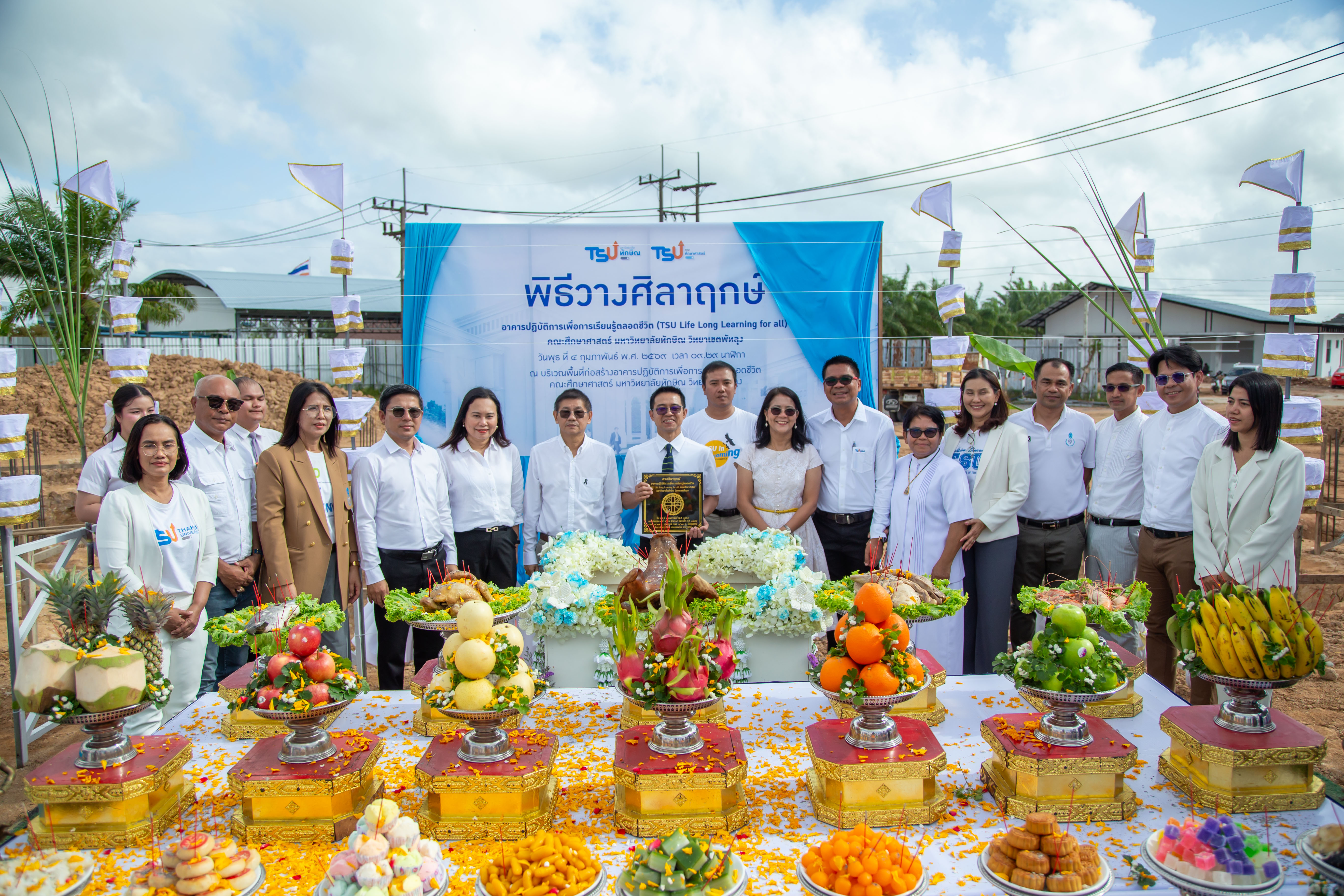 มหาวิทยาลัยทักษิณ โดยคณะศึกษาศาสตร์ จัดพิธีวางศิลาฤกษ์อาคารปฏิบัติการเพื่อการเรียนรู้ตลอดชีวิต (TSU Life Long Learning for All) ณ บริเวณพื้นที่ก่อสร้างอาคาร คณะศึกษาศาสตร์ มหาวิทยาลัยทักษิณ วิทยาเขตพัทลุง เมื่อวันพุธที่ 4 กุมภาพันธ์ 2569 โดยได้รับเกียรติจาก รองศาสตราจารย์ ดร.ณฐพงศ์ จิตรนิรัตน์ อธิการบดีมหาวิทยาลัยทักษิณ เป็นประธานในพิธี โดยมี มีคณะผู้บริหารมหาวิทยาลัย คณะผู้บริหารคณะศึกษาศาสตร์ คณาจารย์ บุคลากร ตลอดจนแขกผู้มีเกียรติจากหน่วยงานต่าง ๆ เข้าร่วม