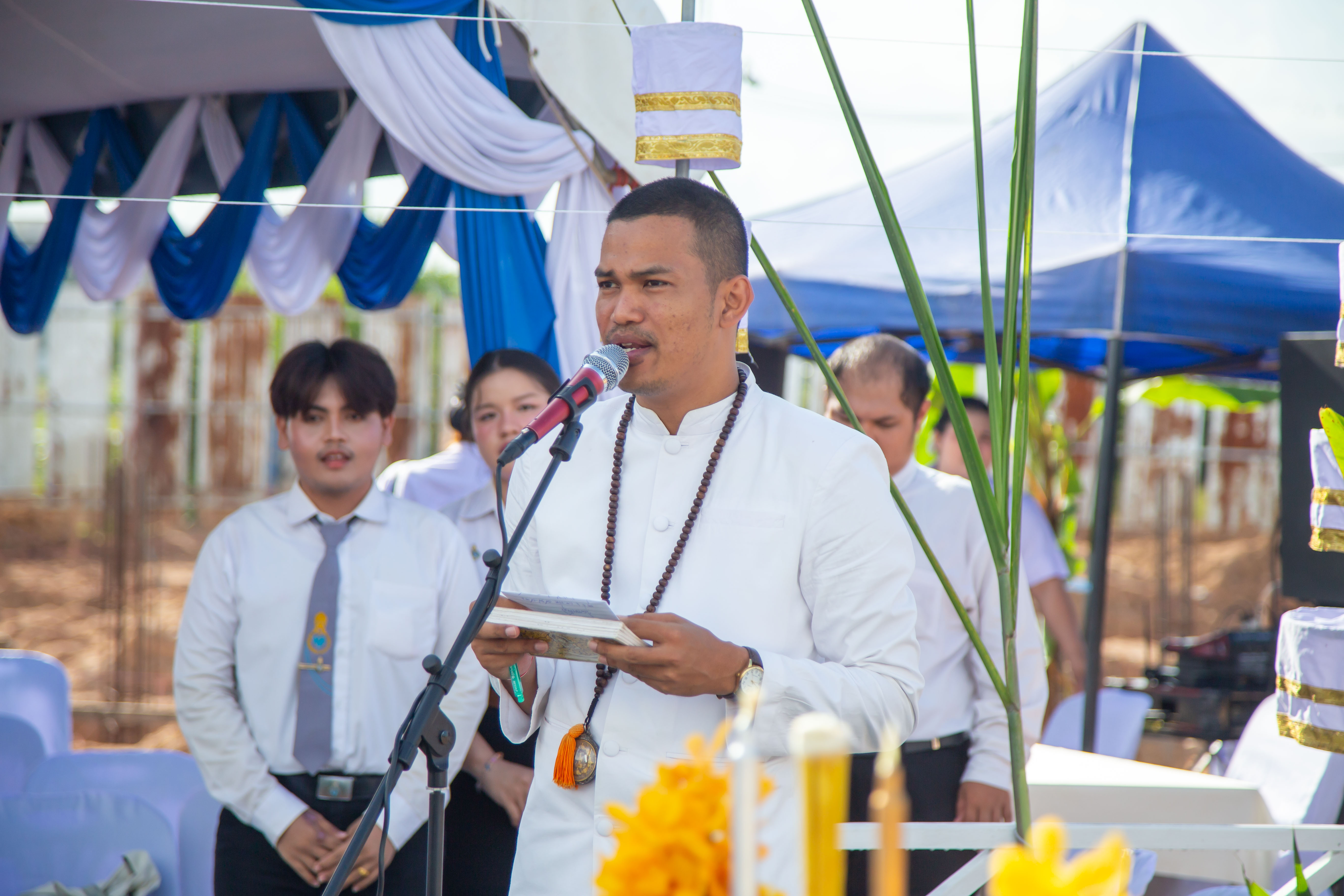ท่ามกลางบรรยากาศที่เรียบง่าย แต่อบอวลด้วยความเป็นสิริมงคล โดยเริ่มต้นด้วยพิธีบวงสรวงและประกอบพิธีพราหมณ์ ก่อนเข้าสู่พิธีวางศิลาฤกษ์อาคาร ซึ่งถือเป็นสัญลักษณ์ของการเริ่มต้นโครงการก่อสร้าง และสะท้อนถึงความร่วมแรงร่วมใจในการขับเคลื่อนภารกิจด้านการศึกษาและการพัฒนาทรัพยากรมนุษย์ของมหาวิทยาลัยทักษิณ