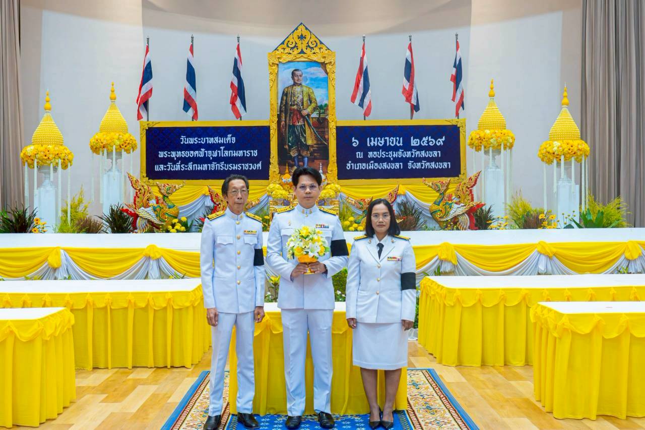 วันที่ 6 เมษายน 2569 มหาวิทยาลัยทักษิณ นำโดย ผศ.ดร.สิงหา ประสิทธิ์พงศ์ รองคณบดีฝ่ายวิชาการ คณะศึกษาศาสตร์ พร้อมด้วยคณะผู้บริหาร เข้าร่วมพิธีวางพานพุ่มดอกไม้ถวายราชสักการะ เนื่องใน วันจักรี ประจำปี 2569 ณ หอประชุมจังหวัดสงขลา อำเภอเมือง จังหวัดสงขลา โดยมีนายรัฐศาสตร์ ชิดชู ผู้ว่าราชการจังหวัดสงขลา เป็นประธานในพิธี