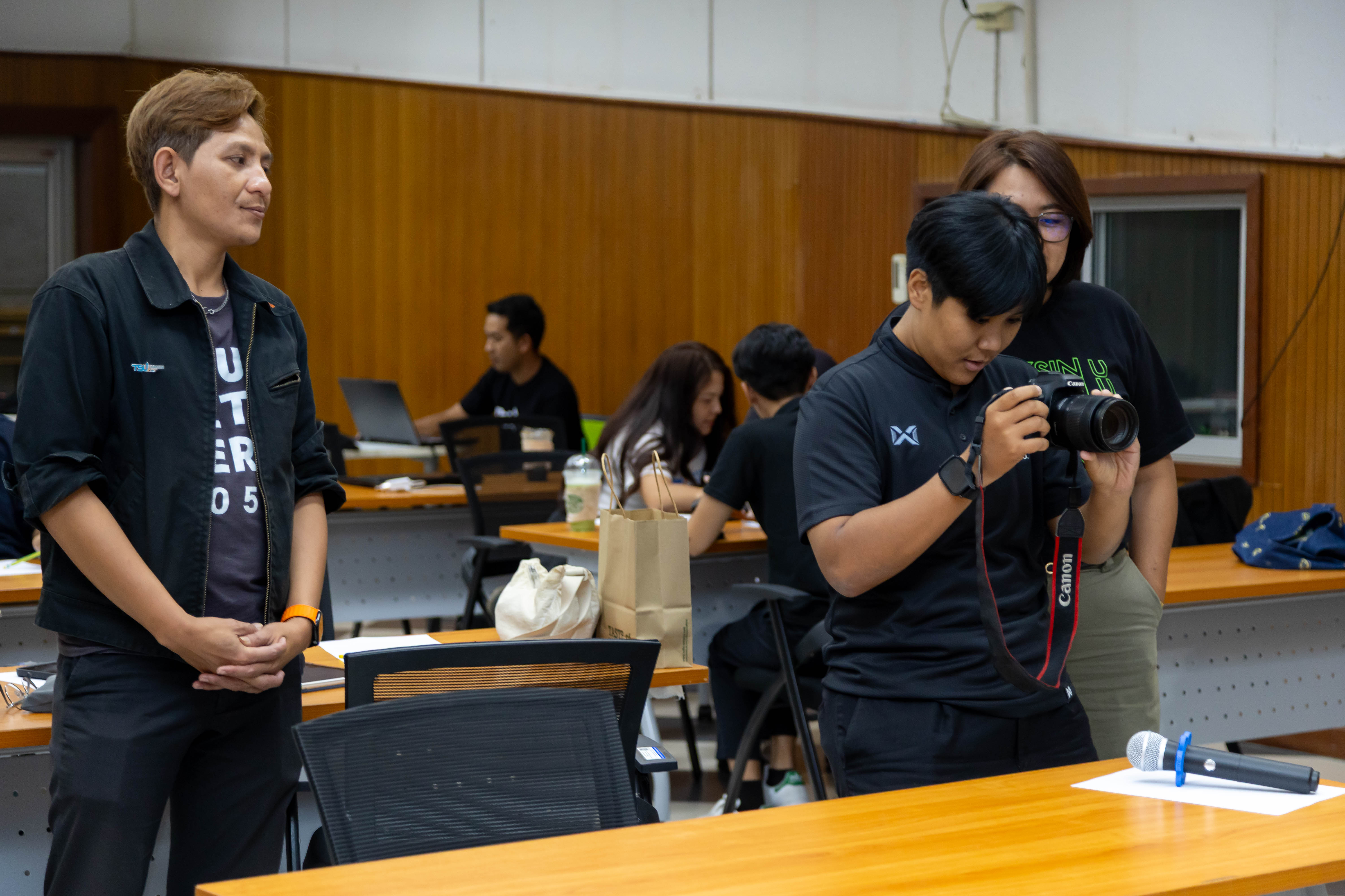 นอกจากนี้ ภายในกิจกรรมยังเปิดโอกาสให้ผู้เข้าร่วมได้ฝึกปฏิบัติจริง โดยแบ่งกลุ่มเพื่อจำลองสถานการณ์ข่าวในรูปแบบต่าง ๆ อาทิ การลงนามความร่วมมือ (MOU) การจัดสัมมนา การอบรม และการเปิดพื้นที่หรือกิจกรรมของหน่วยงาน ให้ผู้เข้าร่วมได้ทั้ง “ถ่ายภาพ” และ “เขียนข่าว” จากสถานการณ์ที่กำหนด พร้อมนำเสนอผลงานและรับคำแนะนำจากวิทยากร เพื่อพัฒนาทักษะอย่างรอบด้านและสามารถนำไปประยุกต์ใช้ได้จริง