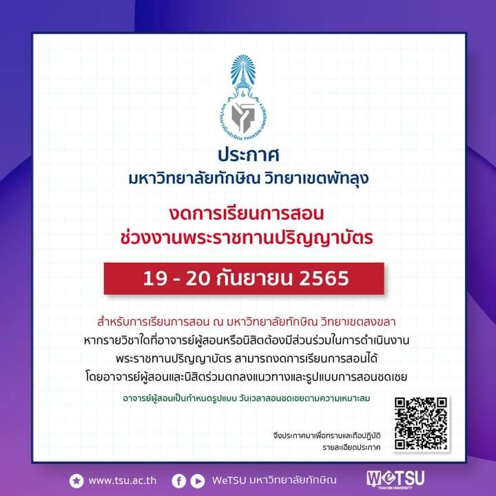 ประกาศมหาวิทยาลัยทักษิณ วิทยาเขตพัทลุง เรื่อง ประชาสัมพันธ์เส้นทางการจราจรและที่...
