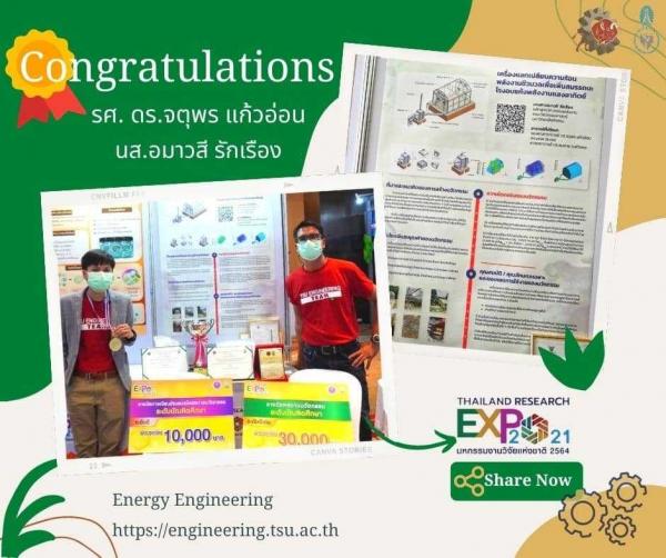 มหาวิทยาลัยทักษิณ ขอแสดงความยินดีกับนิสิตที่ได้รับรางวัลในการนำเสนอผลงาน ในงาน “มหกรรมงานวิจัยแห่งชาติ 2564 (Thailand Research Expo 2021)”