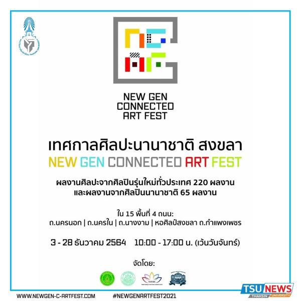 คุณอำมฤทธิ์ ชูสุวรรณ ศิลปินแห่งชาติ (สาขาสื่อผสม 2563) ประธานโครงการ หัวหน้าภัณฑารักษ์ ให้ข้อมูลเกี่ยวกับการจัดงานในครั้งนี้ว่า “เทศกาลศิลปะนานาชาติสงขลา เชื่อมโยงจากรุ่นสู่รุ่น New Gen Connected Art fest ครั้งนี้เป็นการจัดนิทรรศการที่มีการจัดการแบบเป็นระบบที่จะเป็นมาตรฐานต่อการจัดการศิลปะต่อไป มีการคัดสรรบุคคลเข้ารับการอบรมเพื่อทำหน้าที่ภัณฑารักษ์ โดยแยกตามภูมิภาคต่างๆ แล้วจึงไปคัดสรรผลงานของศิลปินในภูมิภาคนั้นๆ นำเสนอทางนิทรรศการในรูปแบบ online แล้วจึงนำผลงานเหล่านั้นมาคัดสรรอีกครั้ง โดยภัณฑารักษ์ ส่วนกลางร่วมกับภัณฑารักษ์ภูมิภาคซึ่งกว่าจะออกมาเป็นนิทรรศการ เทศกาลศิลปะนานาชาติ สงขลา “เชื่อมโยงจากรุ่นสู่รุ่น” New Gen Connected Art Fest 2021 ครั้งนี้ ได้มีการจัดกิจกรรมอบรมภัณฑารักษ์ 4 ภาคโดยผู้ทรงคุณวุฒิมีประสบการณ์แขนงต่าง ๆ จากนั้นมอบหมายให้ภัณฑารักษ์ประจำภูมิภาคค้นหาผลงานศิลปะจากศิลปินรุ่นใหม่ กว่า 1,000 คน ได้ผลงานในระยะแรกกว่า 1,000 ชิ้น หลังจากนั้นผลงานจะถูกคัดสรรโดยภัณฑารักษ์ส่วนกลาง เหลือเพียง 220 ชิ้น และศิลปินรับเชิญจากนานาชาติ อีกจำนวน 66 ชิ้น งาน จาก ยุโรป อเมริกา เอเชีย และอาเซียน และจัดแสดง ในพื้นที่ ต่างๆใน 3 ถนน คือ ถนนนครนอก ถนนนครใน และถนนนางงาม รวมทั้งพื้นที่หลักคือ คือ หอศิลปสงขลา ถนนกำแพงเพชร ซึ่งผู้ชมสามารถเดินชมผลงานศิลปะทั้งหมดและเดินชมภูมิทัศน์ของเมืองไปพร้อมๆกัน ผลงานที่ได้รับการเลือกสรรทั้งหมดจะนำไปจัดแสดงนิทรรศการในสถานที่ทรงคุณค่า แปลกใหม่ โดดเด่นนั่นคือ พื้นที่สงขลาเมืองเก่า จังหวัดสงขลา ฉะนั้น ผู้ชมจะได้เดินเที่ยวถ่ายภาพชมบรรยากาศความงดงามของเมืองเก่าที่ขนาบด้วยสองทะเล แล้วยังได้เดินเช็คอิน ค้นหาผลงานศิลปะที่ถูกจัดแสดงอยู่ในหอศิลป์สงขลา ร้านกาแฟ ร้านอาหาร สถานที่สุดเก๋ไก๋ ทั่วทั้งเมืองสงขลาตามพื้นที่ต่างๆ 15 พื้นที่ ในเมืองเก่าสงขลา โดยจะเปิดให้รับชมได้ตั้งแต่ วันที่ 3 ธันวาคม – 28 ธันวาคม 2564 เวลา 10.00 น. - 17.00น. เว้นวันจันทร์” สามารถดูรายละเอียดเพิ่มเติมได้ที่ https://bit.ly/3lhyA9f