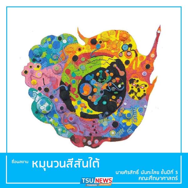 7. นายศิรสิทธิ์ นันทะไสย ชั้นปีที่ 5 คณะศึกษาศาสตร์ ชื่อผลงาน "หมุนวนสีสันใต้"