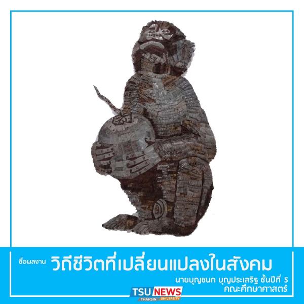 5. นายบุญชนก บุญประเสริฐ ชั้นปีที่ 5 คณะศึกษาศาสตร์ ชื่อผลงาน "วิถีชีวิตที่เปลี่ยนแปลงในสังคม"