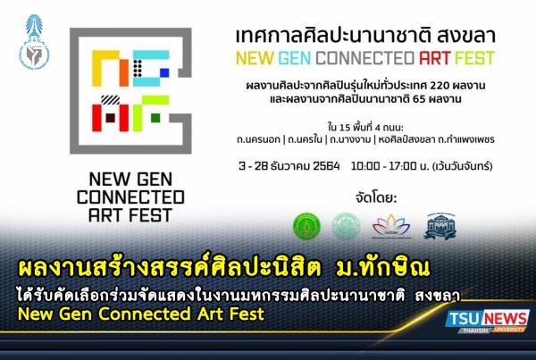สำหรับการจัดงานมหกรรมศิลปะนานาชาติ สงขลา New Gen Connected Art Fest ในครั้งนี้ มีผลงานศิลปะของนิสิตคณะศิลปกรรมศาสตร์ มหาวิทยาลัยทักษิณ ได้รับการคัดเลือกให้เข้าร่วมจัดแสดงในงานจำนวน 9 ผลงาน ได้แก่
