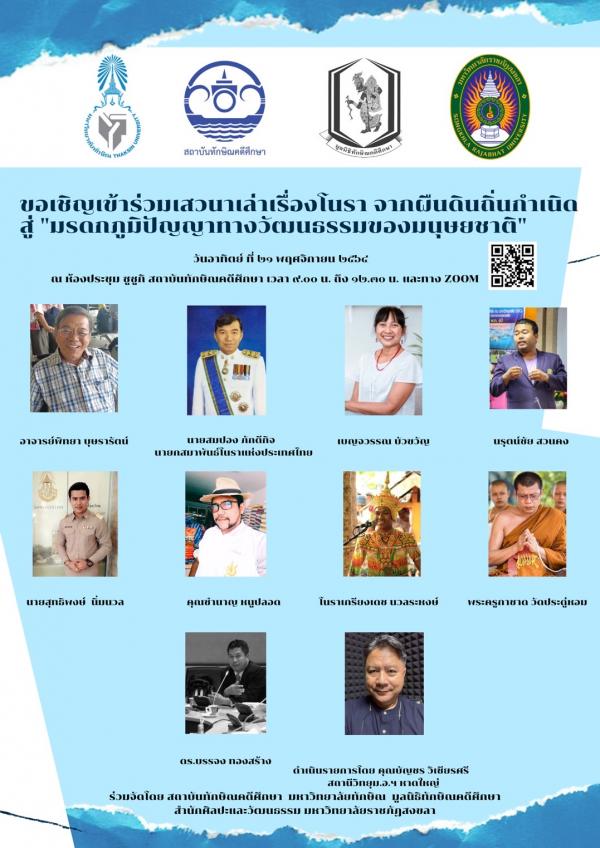 เสวนาเล่าเรื่องโนรา จากผืนดินถิ่นกำเนิดสู่ มรดกภูมิปัญญาทางวัฒนธรรมของมนุษยชาติ