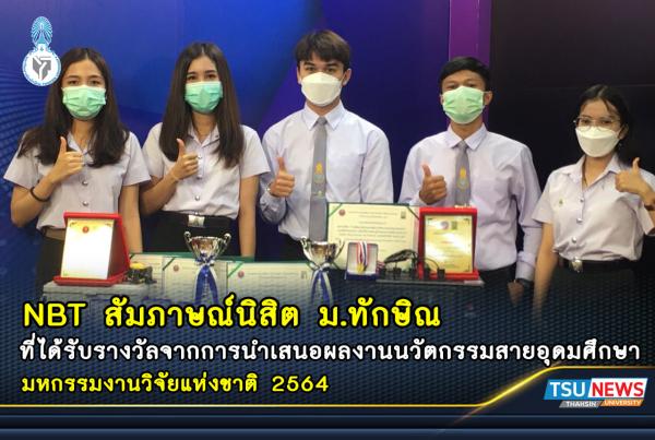 โดยนิสิตได้รับรางวัลจากการนำเสนอผลงานนวัตกรรมสายอุดมศึกษา ประจำปี 2564 ระหว่างวันที่ 23 – 26 พฤศจิกายน 2564 ในงาน “มหกรรมงานวิจัยแห่งชาติ 2564 (Thailand Research Expo 2021)”