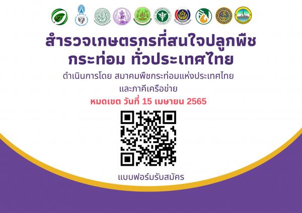 สมาคมพืชกระท่อมแห่งประเทศไทยและภาคีเครือข่าย ขอเชิญชวนเกษตรกรที่สนใจปลูกพืชกระท่อม ทั่วประเทศไทย กรอกแบบฟอร์มการสำรวจเกษตรกรปลูกพืชกระท่อม โดยสมาคมพืชกระท่อมแห่งประเทศไทยจะดำเนินการส่งเสริมการปลูกพืชกระท่อมและแจ้งข้อมูลให้ทราบในช่วงเดือนสิงหาคม 2565