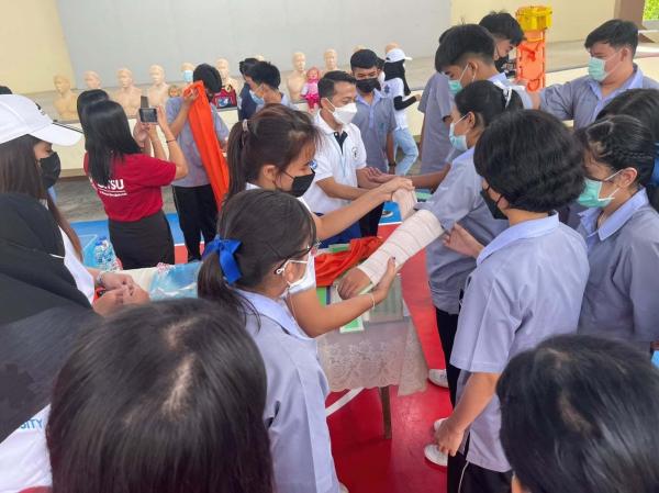 เมื่อวันที่ 20 กุมภาพันธ์ 2565 นักเรียนระดับชั้นมัธยมศึกษาปีที่ 4 และบุคลากรของโรงเรียนสาธิตมหาวิทยาลัยทักษิณ เข้าร่วมโครงการพัฒนาสมรรถนะนิสิตชมรมกู้ชีพปาริชาต ปีการศึกษา 2564 จัดขึ้น ณ ศูนย์กิจกรรมนิสิต ลานวัฒนธรรม และสระน้ำด้านหน้าคณะวิทยาการสุขภาพและการกีฬามหาวิทยาลัยทักษิณ วิทยาเขตพัทลุง โดยมีการฝึกปฏิบัติการช่วยชีวิตขั้นพื้นฐาน (CPR) การสาธิตและฝึกปฏิบัติการใช้เครื่อง AED และการฝึกปฏิบัติการเคลื่อนย้ายผู้ป่วยและการช่วยเหลือผู้ป่วยที่มีสิ่งอุดตันทางเดินหายใจ วิทยากรโดยคุณพยอม ธนมี เจ้าหน้าที่บริหารงานชำนาญการ ฝ่ายบริหารกลางและทรัพยากรบุคคล วิทยาเขตสงขลาและทีมครูฝึก การฝึกปฏิบัติการช่วยเหลือและกู้ภัยทางน้ำ โดยคุณสมบูรณ์ จุลสุรางค์ นักวิชาการ ฝ่ายกิจการนิสิตวิทยาเขตสงขลาและทีมครูฝึก ในการจัดกิจกรรมครั้งนี้วิทยากรและผู้เข้าร่วมโครงการทุกคนเคร่งครัดในเรื่องป้องกันตนเองจากไวรัสโควิด-19 และยึดหลัก D-M- H -T-T ในการเข้าร่วมกิจกรรม