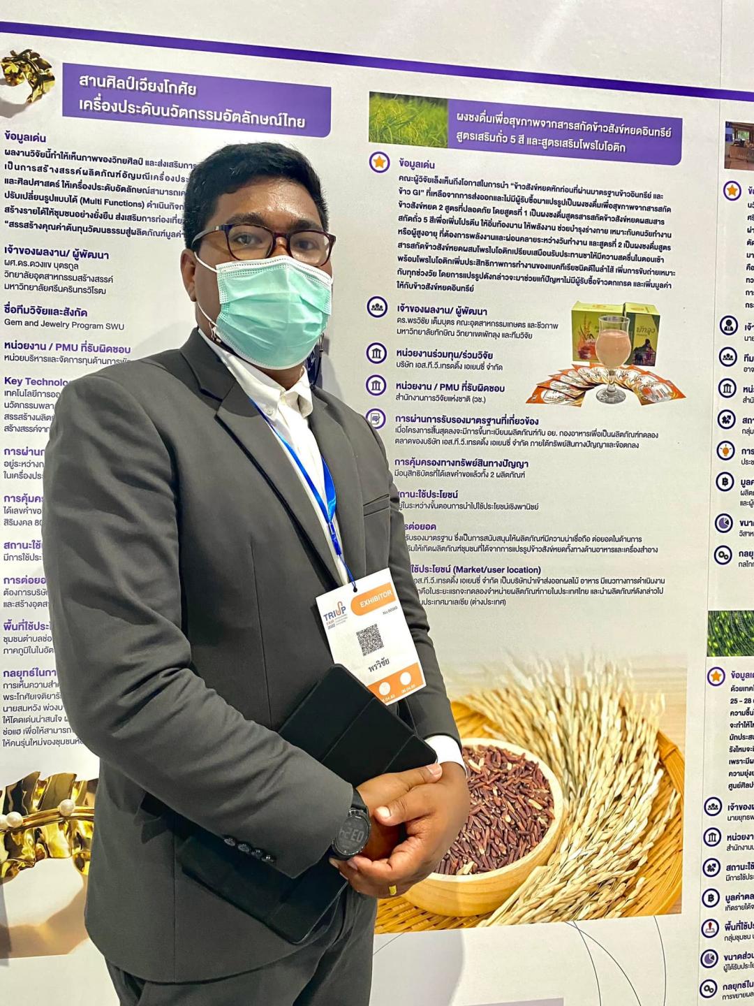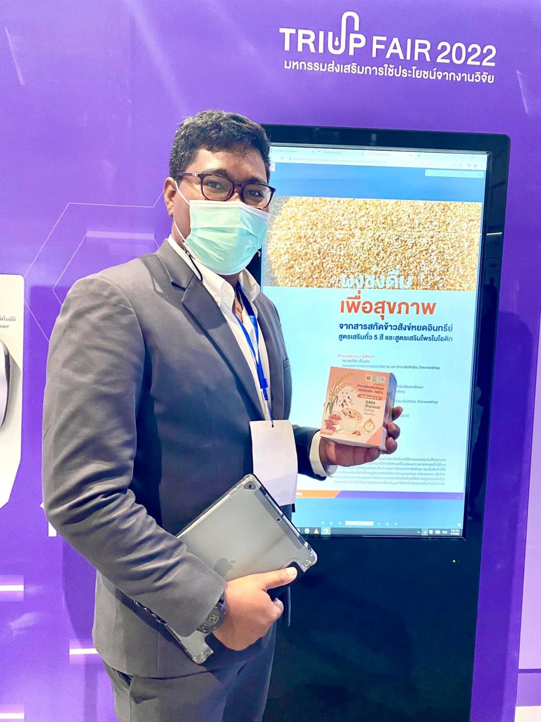ผงชงดื่มเพื่อสุขภาพจากสารสกัดข้าวสังข์หยดอินทรีย์ ผลิตภัณฑ์จากงานวิจัย นักวิจัยมหาวิทยาลัยทักษิณสู่การใช้ประโยชน์ในเชิงพาณิชย์ ร่วมจัดแสดงในงาน TRIUP FAIR 2022 "มหกรรมส่งเสริมการใช้ประโยชน์จากงานวิจัย"