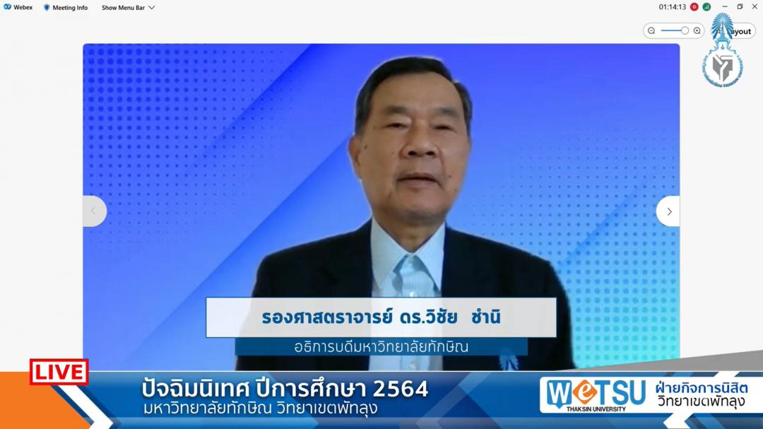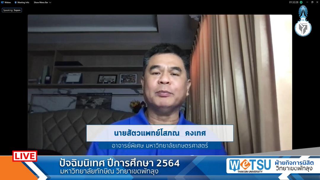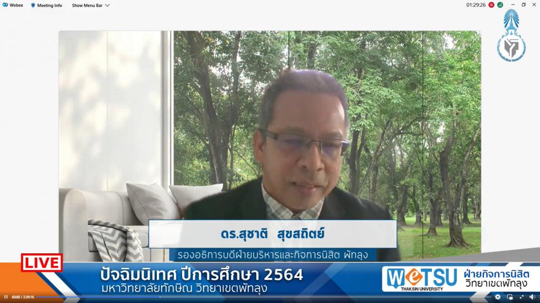 ม.ทักษิณ วิทยาเขตพัทลุง จัดกิจกรรมปัจฉิมนิเทศนิสิต ประจำปีการศึกษา 2564 แบบออนไลน์