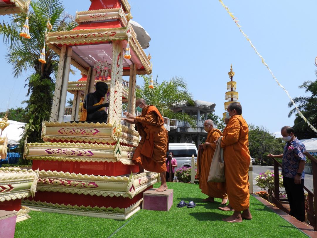 วันนี้ (12 เมษายน 2565) สถาบันทักษิณคดีศึกษา มหาวิทยาลัยทักษิณ จัดงานสืบสานประเพณีวันว่าง “ขึ้นเบญจาสรงน้ําสามสมเด็จเจ้าแห่งลุ่มทะเลสาบสงขลา” เพื่อส่งเสริม สืบสาน และอนุรักษ์วัฒนธรรมประเพณีที่ดีงามของคนไทย สำหรับการเปิดงานในครั้งนี้ นายเทิดเกียรติ เมธีลักษณ์ ที่ปรึกษา อบจ.สงขลา กล่าวต้อนรับแขกผู้มีเกียรติและผู้เข้าร่วมกิจกรรม และเปิดงานโดยการตีโพน โดย รศ.ไพบูลย์ ดวงจันทร์ รองอธิการบดีฝ่ายบริหารและกิจการนิสิต สงขลา มหาวิทยาลัยทักษิณ พร้อมคณะผู้บริหารและแขกผู้มีเกียรติร่วมกิจกรรม ซึ่งประกอบด้วยพิธีทำบุญตักบาตร และสรงน้ําสามสมเด็จเจ้าฯพร้อมรับฟังการบรรยายความรู้ประเพณีวันว่าง โดย อาจารย์บุญเลิศ จันทระ