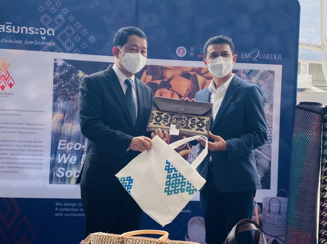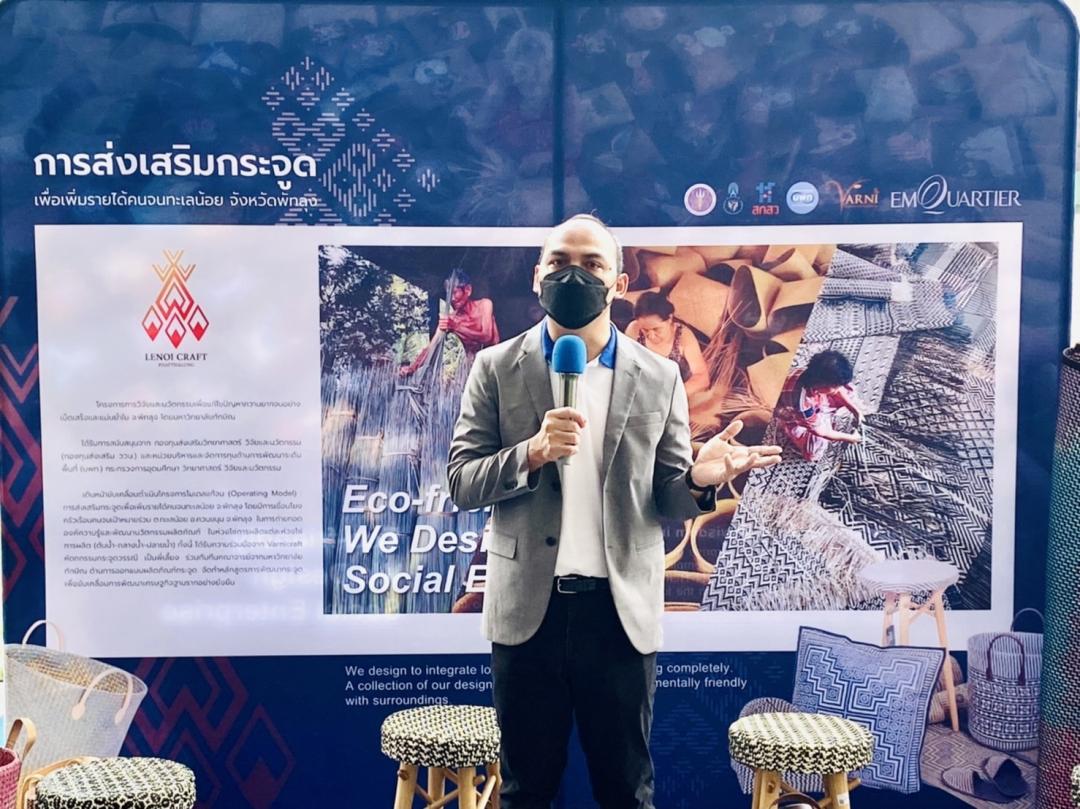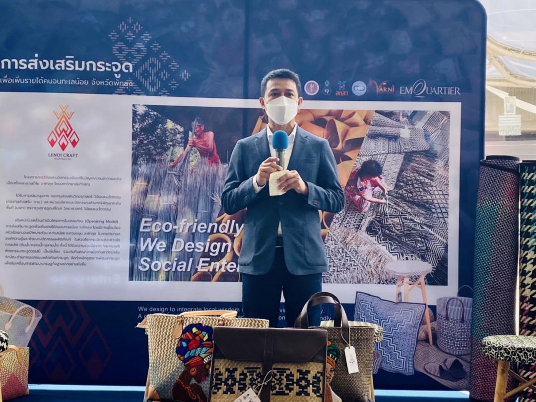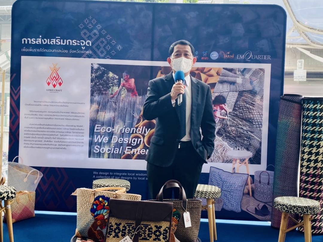 และได้รับเกียรติจาก ศาสตราจารย์ ดร.นพ.สิริฤกษ์ ทรงศิวิไล ปลัดกระทรวงการอุดมศึกษา วิทยาศาสตร์ วิจัยและนวัตกรรม เป็นประธานเปิดงาน พร้อมด้วย รองศาสตราจารย์ ดร.ณฐพงศ์ จิตรนิรัตน์ รองอธิการบดีฝ่ายวิจัยและบริการวิชาการ รองศาสตราจารย์ ดร.สมัคร แก้วสุกแสง ผู้อำนวยการสถาบันวิจัยและพัฒนา ผู้บริหาร คณาจารย์นักวิจัยมหาวิทยาลัยทักษิณ และตัวแทนจากชุมชนทะเลน้อย เข้าร่วม สำหรับกิจกรรมภายในงานได้จัดเวทีเสวนา “จาก Lenoi Craft Phattalung สู่การสร้างพลัง สร้างรายได้ กระจายโอกาส” ร่วมกับหน่วยงานภาคีความร่วมมือและจำหน่ายผลิตภัณฑ์กระจูดจากโครงการฯที่มีหลากหลายรูปแบบ และมีอัตลักษณ์ ลวดลายที่โดดเด่นสวยงาม ซึ่งได้รับความสนใจจากผู้เข้าร่วมงานเป็นจำนวนมาก ผู้สนใจสามารถเข้าเยี่ยมชมผลิตภัณฑ์กระจูดจาก Lenoi Craft Phattalung ได้ตั้งแต่วันนี้ - 19 เมษายน 2565 ภายในงาน Songkran Heritage ณ ชั้น M ศูนย์การค้าเอ็มควอเทียร์ สุขุมวิท กรุงเทพฯ