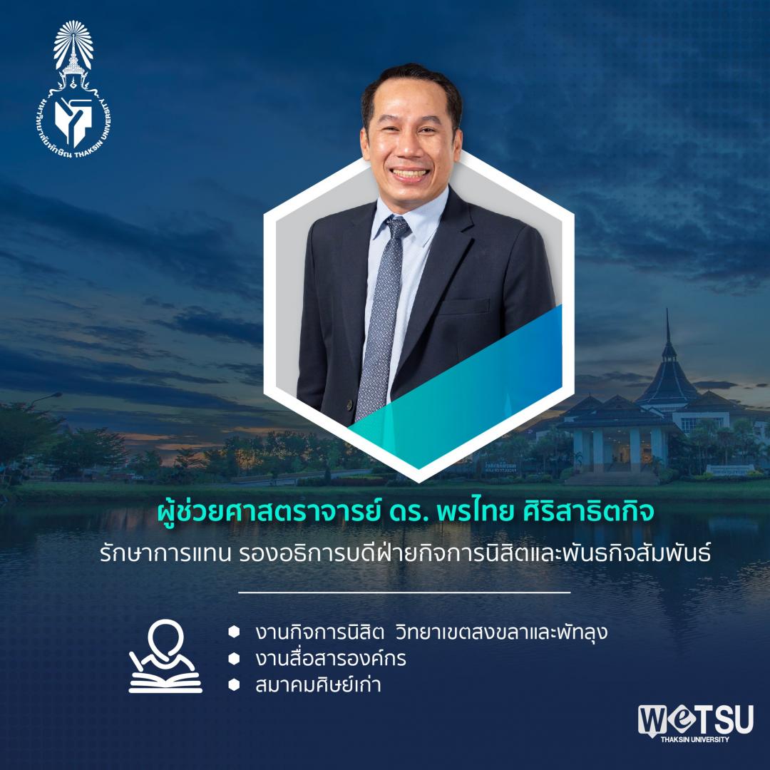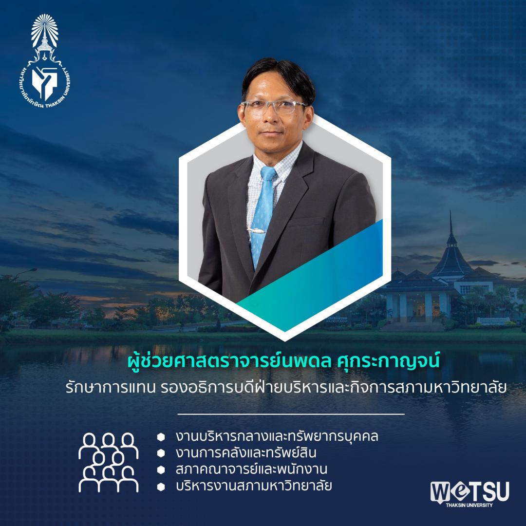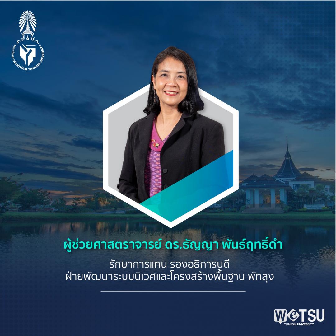 7. ผู้ช่วยศาสตราจารย์ ดร. ธัญญา พันธ์ฤทธิ์ดำ เป็น ผู้รักษาการแทนรองอธิการบดีฝ่ายพัฒนาระบบนิเวศและโครงสร้างพื้นฐาน พัทลุง