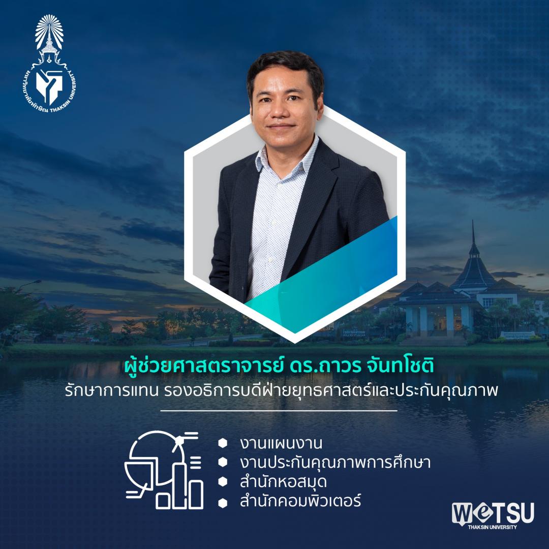 2. ผู้ช่วยศาสตราจารย์ ดร. ถาวร จันทโชติ เป็น ผู้รักษาการแทนรองอธิการบดีฝ่ายยุทธศาสตร์และประกันคุณภาพ