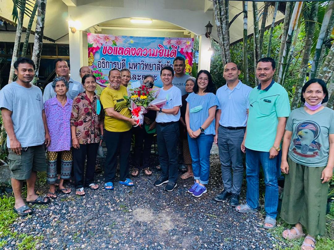 นายวิโรจน์ รัตนโกสัย นางบุญญา เอียดเอก ราษฎร หมู่ที่ 9 ตำบลบ้านพร้าว อำเภอป่าพะยอม กล่าวว่า วันนี้ได้รวมตัวกับพี่ๆ น้องๆ นำโดยนายสวัสดิ์ จันทร์สุข ผู้ใหญ่บ้านหมู่ที่ 9 ตำบลบ้านพร้าว และชาวชุมชนหมู่ที่ 9 ผู้มีส่วนได้ส่วนเสียในการเข้ามาใช้พื้นที่ของมหาวิทยาลัยทักษิณ วิทยาเขตพัทลุง จัดกิจกรรมแสดงความยินดีกับรองศาสตราจารย์ ดร.ณฐพงศ์ จิตรนิรัตน์ รักษาการแทนอธิการบดีมหาวิทยาลัยทักษิณ และทีมบริหารชุดใหม่ ผู้ช่วยศาสตราจารย์ ดร.ธัญญา พันธ์ฤทธิ์ดำ รักษาการแทนรองอธิการบดีฝ่ายพัฒนาระบบนิเวศและโครงสร้างพื้นฐาน พัทลุง รองศาสตราจารย์ ดร.สมัคร แก้วสุกแสง รักษาการแทนรองอธิการบดีฝ่ายวิจัยและนวัตกรรม พร้อมด้วยบุคลากร ได้เข้าร่วม