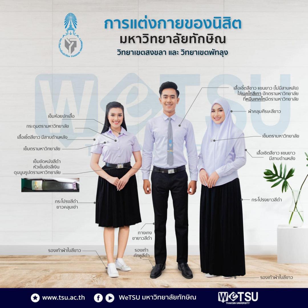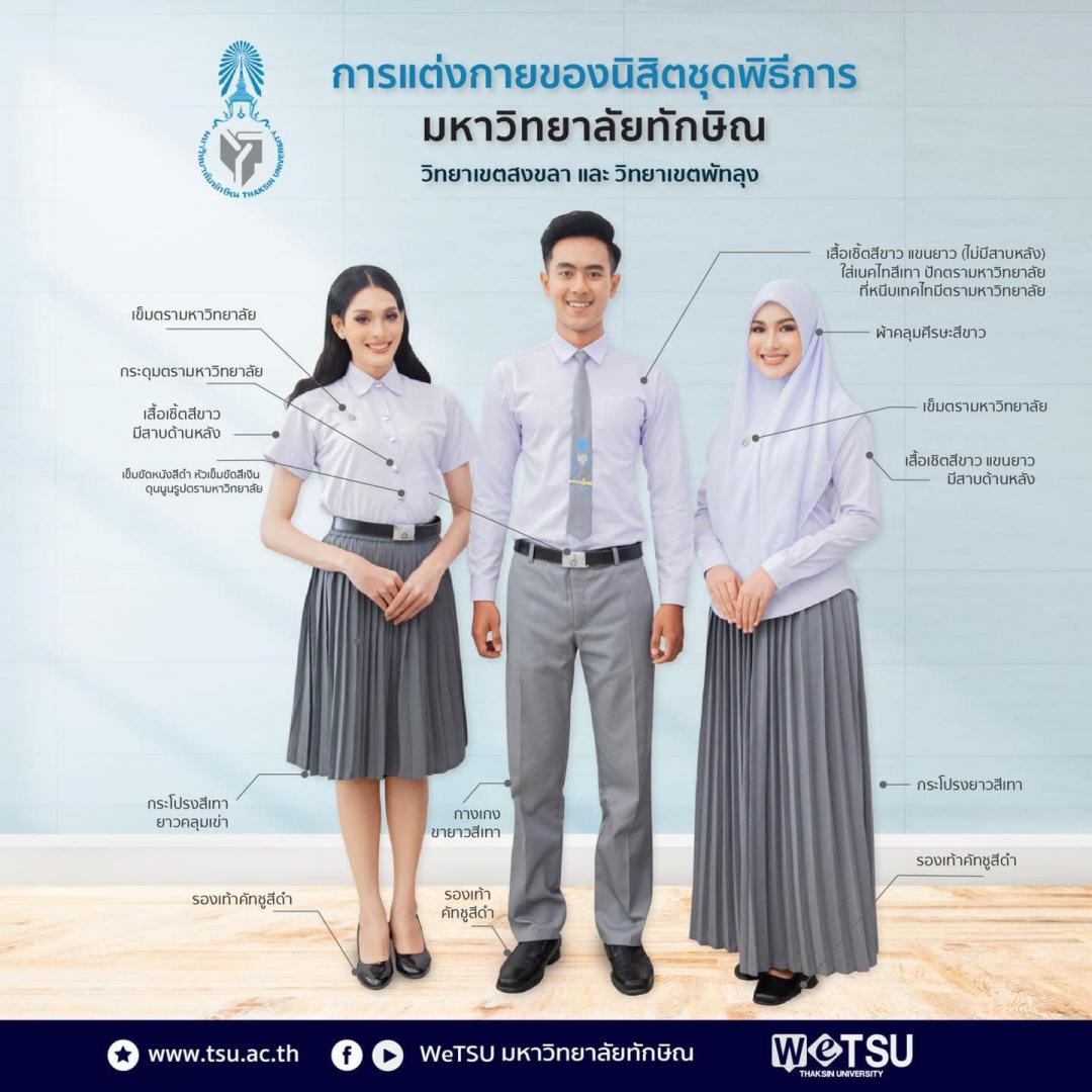 ระเบียบเครื่องแบบนิสิต ชุดพิธีการ ชุดพละของมหาวิทยาลัยทักษิณ วิทยาเขตสงขลา และ วิทยาเขตพัทลุง