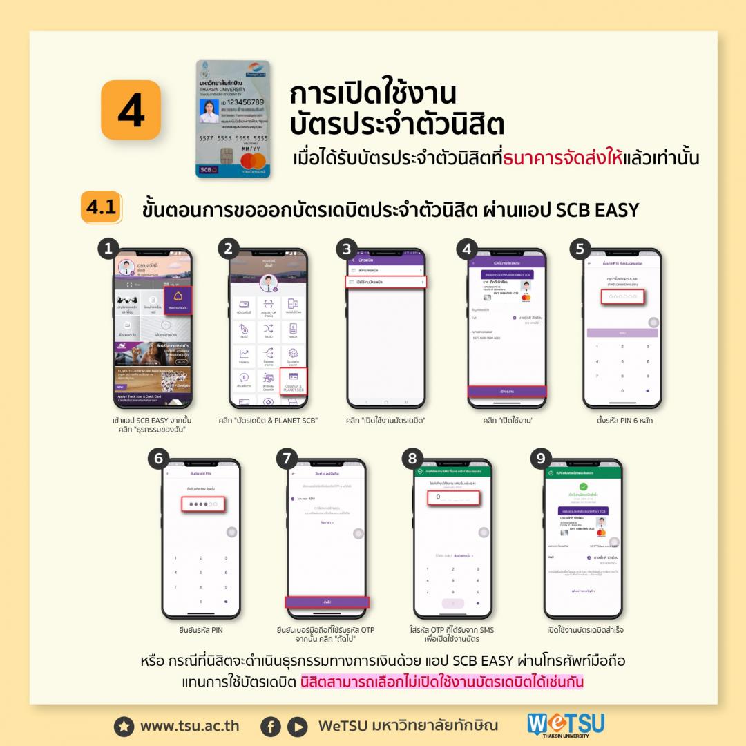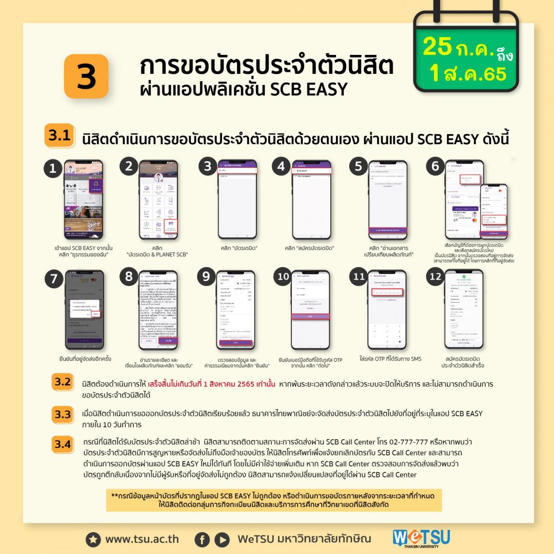 4 ขั้นตอนขอออกบัตรประจำตัวนิสิต ผ่านแอปพลิเคชั่น SCB EASY สำหรับนิสิตใหม่ ปีการศึกษา 2565