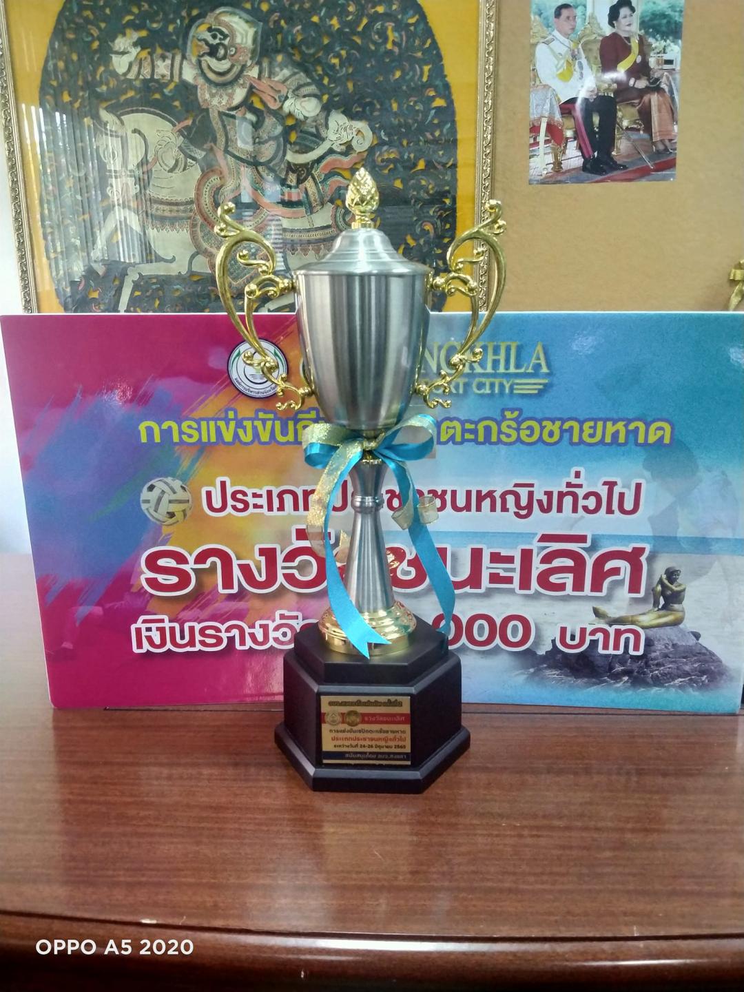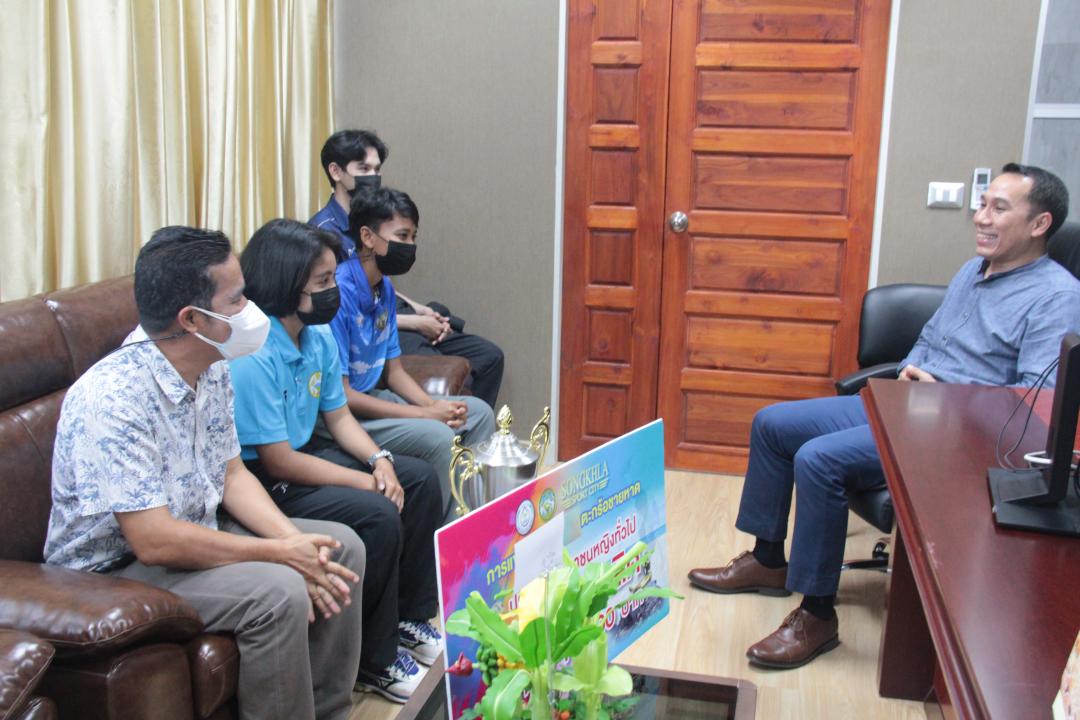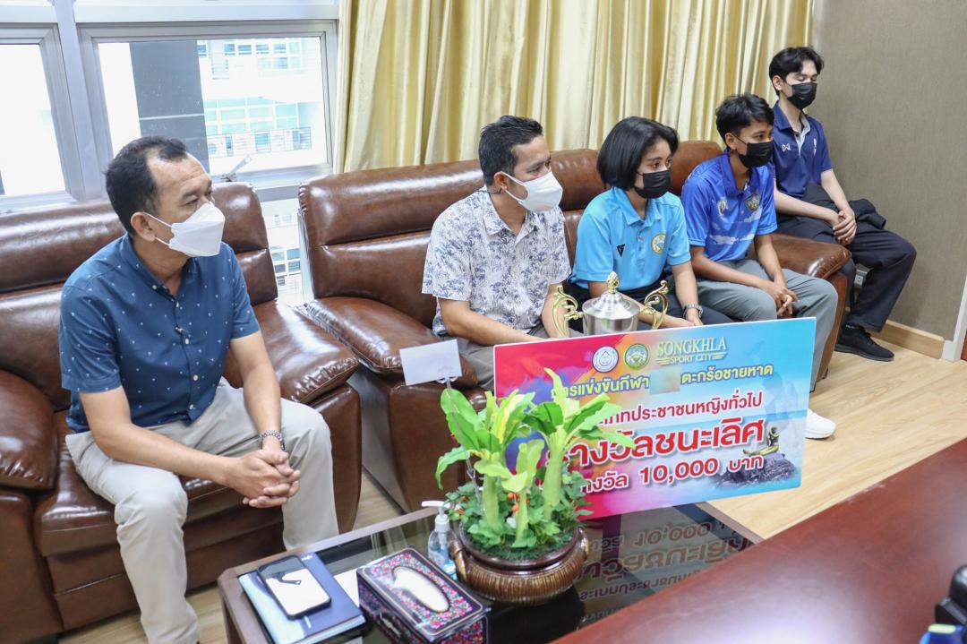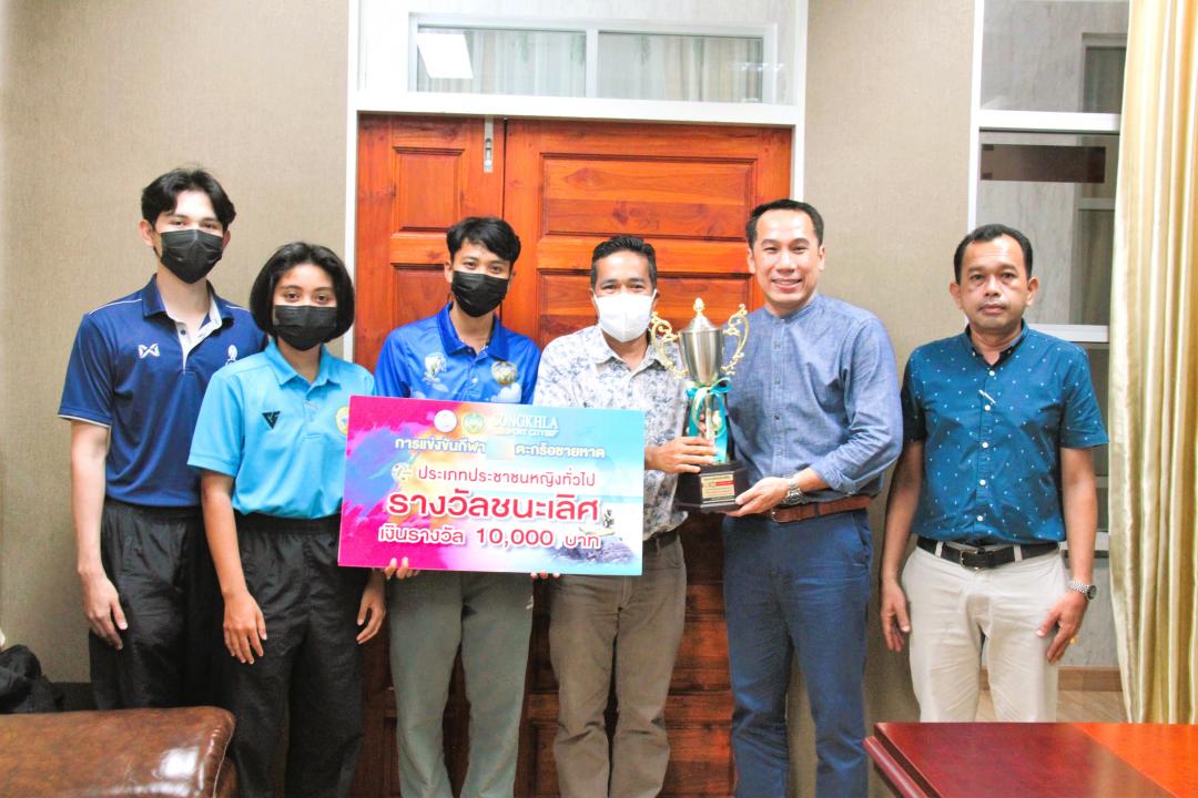 ทีมชนะเลิศตะกร้อชายหาด "อบจ.สงขลา โอเพ่นคัพ ครั้งที่ 2" รายงานและมอบถ้วยชนะเลิศแก่มหาวิทยาลัยทักษิณ