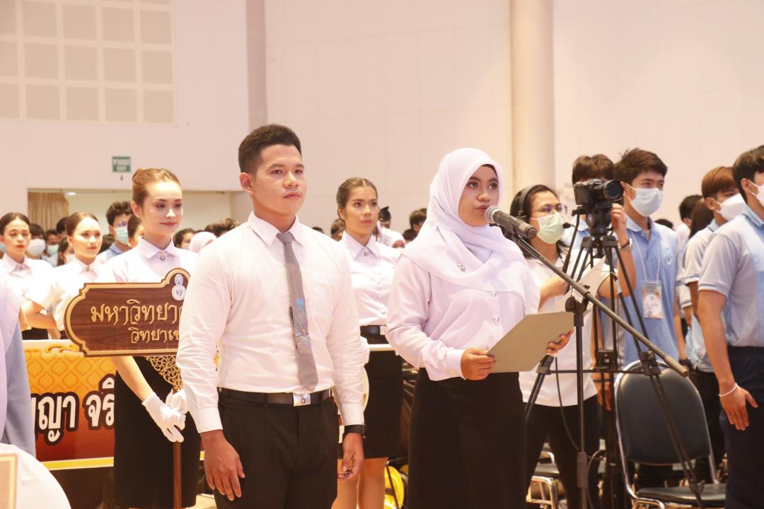 มหาวิทยาลัยได้เตรียมความพร้อมด้านการจัดการเรียนการสอนไว้อย่างเต็มที่เพื่อรองรับน้องๆ นิสิตใหม่ทุกคน ไม่ว่าจะเป็นเรื่องการดูแลเรื่องการรักษาสุขภาพ การป้องกันโควิด-19 หรือการให้คำปรึกษาหรือการดูแลสวัสดิการและความเป็นอยู่ที่ดี การมีคุณภาพชีวิตที่ดีของน้องๆ ทุกคน สิ่งที่สำคัญที่สุดวันนี้ก็คือมหาลัยทักษิณ ได้สร้างพื้นที่สร้างสรรค์ ทำให้เกิดพื้นที่สร้างสรรค์ที่ทุกคนสามารถมาร่วมกันสร้างสรรค์ ร่วมกันเรียนรู้ ร่วมกันที่จะทำกิจกรรมหรือโครงการต่างๆ ที่สมค่ากับความเป็นปัญญาชนแล้วก็เป็นส่วนหนึ่งของการนำความรู้ไปสู่การบริการสังคมและการบริการชุมชนในอีกมุมด้วย ด้านหนึ่งหน้าที่หลักของพวกเราคือการเรียนหนังสือแต่ด้านหนึ่งในระหว่างที่เราเป็นนิสิตของมหาลัยทักษิณจะต้องเป็นนิสิตที่มีความเป็นพลเมืองที่กระตือรือร้นที่ปรารถนาจะเข้าไปเป็นส่วนหนึ่งการขับเคลื่อนเพื่อการเปลี่ยนแปลงสังคมในมิติต่างๆ เช่นวันนี้เรากำลังพูดถึงเรื่องเศรษฐกิจสร้างสรรค์ เราพูดถึงเรื่องการสร้างเศรษฐกิจฐานราก ทุกคนมีความรู้เมื่อมีความรู้ก็สามารถเอาความรู้ระหว่างเรียนไปช่วยเหลือเกื้อกูลหรือแบ่งปันสังคมในคณะเดียวกันในระหว่างที่เราลงไปในพื้นที่ลงไปเรียนรู้เราก็สามารถเก็บเกี่ยวสิ่งต่างๆเหล่านั้นมาเป็นประสบการณ์ชีวิต ประสบการณ์ชีวิตที่เราแสวงหาได้จากนอกชั้นเรียนก็จะเป็นอีกประเด็นนึงจะเป็นอีกช่วงวันวัยหนึ่งของชีวิตที่จะทำให้เกิดการเติมเต็มและเกิดการพัฒนาศักยภาพที่เต็มเปี่ยมแล้วสามารถทำให้เราออกไปเป็นบัณฑิตเมื่อสำเร็จการศึกษาเป็นบัณฑิตที่มีคุณภาพเป็นบัณฑิตที่สามารถที่จะสร้างความสำเร็จให้เกิดขึ้นกับตัวเองกับคนที่เรารักหรือสิ่งที่คนที่คาดหวังหรือรอคอยความสำเร็จของพวกเราอยู่ ไม่ว่าจะเป็นพ่อแม่หรือญาติพี่น้องหรือเครือญาติของเราทุกคน ทุกคนตั้งหน้าตั้งตารอคอยความสำเร็จของพวกเราอย่างมุ่งมั่น เพราะฉะนั้นเมื่อมาเป็นนิสิตมหาวิทยาลัยทักษิณ ผมก็คาดหวังว่าเราจะใช้เวลาอันมีคุณค่าตลอดสี่ปีหลังจากนี้ในรั้วมหาวิทยาลัยทักษิณ การเรียนรู้ การแบ่งปัน การร่วมกับเพื่อนทั้งที่ในวิชาเอกตัวเอง ทั้งอยู่ในหลักสูตรของตัวเอง ทั้งที่อยู่ในคณะที่ตนเองสังกัดรวมไปถึงการเรียนรู้เพื่อนข้ามวิทยาเขต วิทยาเขตสงขลา วิทยาเขตพัทลุง ก็เป็นวิทยาเขตของมหาวิทยาลัยทักษิณ เราสามารถข้ามเชื่อมโยงไปมาทำให้เกิดการปฏิบัติการ เกาะเกี่ยวกันเป็นเครือข่ายที่เต็มเปี่ยมไปด้วยความรู้ เต็มเปี่ยมไปด้วยความรัก และ
