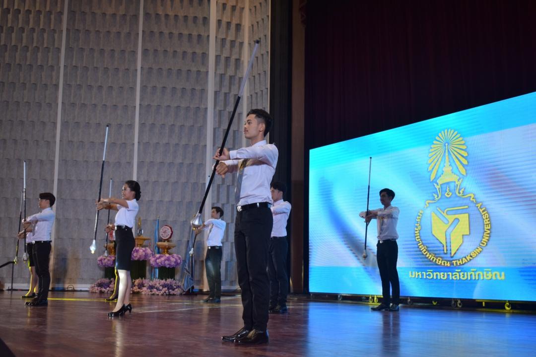 นิสิตและผู้บริหารร่วมแสดงเจตจำนงร่วมกันสู่ “The University of Glocalization” และพิธีมอบตัวเป็นศิษย์ “ปาริชาต ช่อที่ 54” ซึ่งตัวแทนนิสิตใหม่แต่ละคณะมอบมาลัยและช่อดอกไม้ ให้ผู้บริหารมหาวิทยาลัย และผู้บริหารระดับคณะ/วิทยาลัย นิสิตใหม่กล่าวคำปฏิญาณตน โดย นายชยากร สันสีเมือง นายกองค์การนิสิต เป็นผู้กล่าวนำ ปิดท้ายด้วยกิจกรรม “สันฯ สร้างสุข” โดย ชมรมสันทนาการแห่งมหาวิทยาลัยทักษิณ วิทยาเขตสงขลา และรับชมการแสดงคอนเสิร์ต โดย วง Johnny Def VS เพลง วิสสุตา