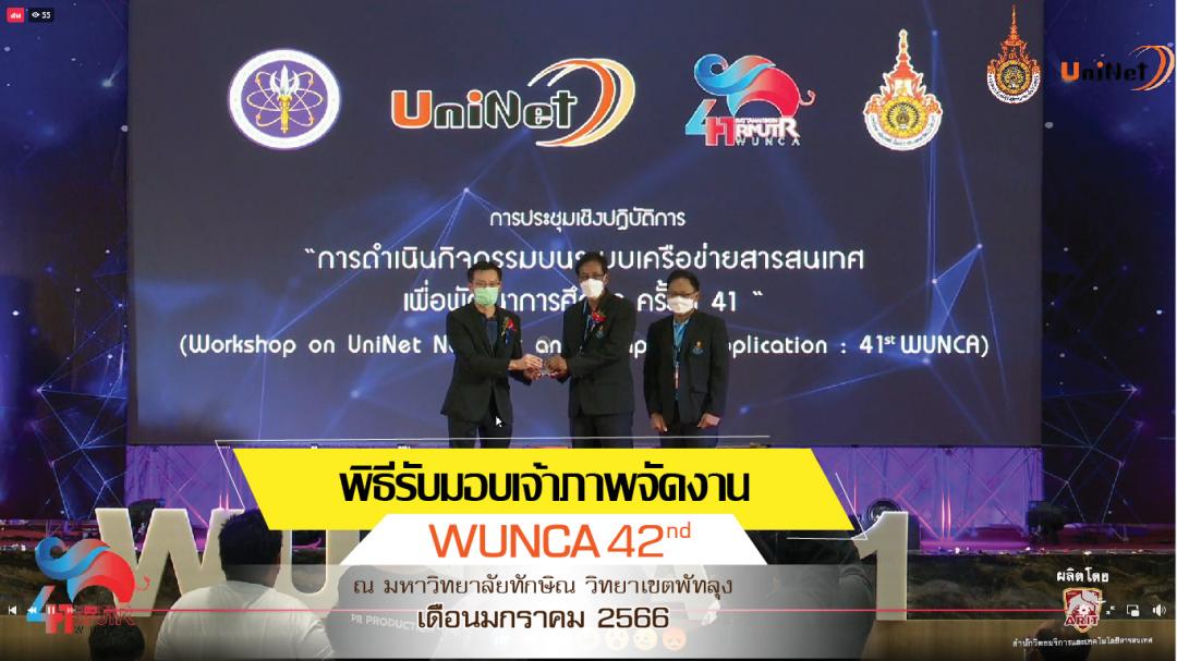 ณ มหาวิทยาลัยเทคโนโลยีราชมงคลรัตนโกสินทร์ เพื่อรับมอบเป็นเจ้าภาพในการจัดโครงการประชุมเชิงปฏิบัติการ“การดำเนินกิจกรรมบนเครือข่ายสารสนเทศเพื่อพัฒนาการศึกษา ครั้งที่ 42 (WUNCA42) จะจัดในเดือนมกราคม พ.ศ. 2566 ณ มหาวิทยาลัยทักษิณ วิทยาเขตพัทลุง