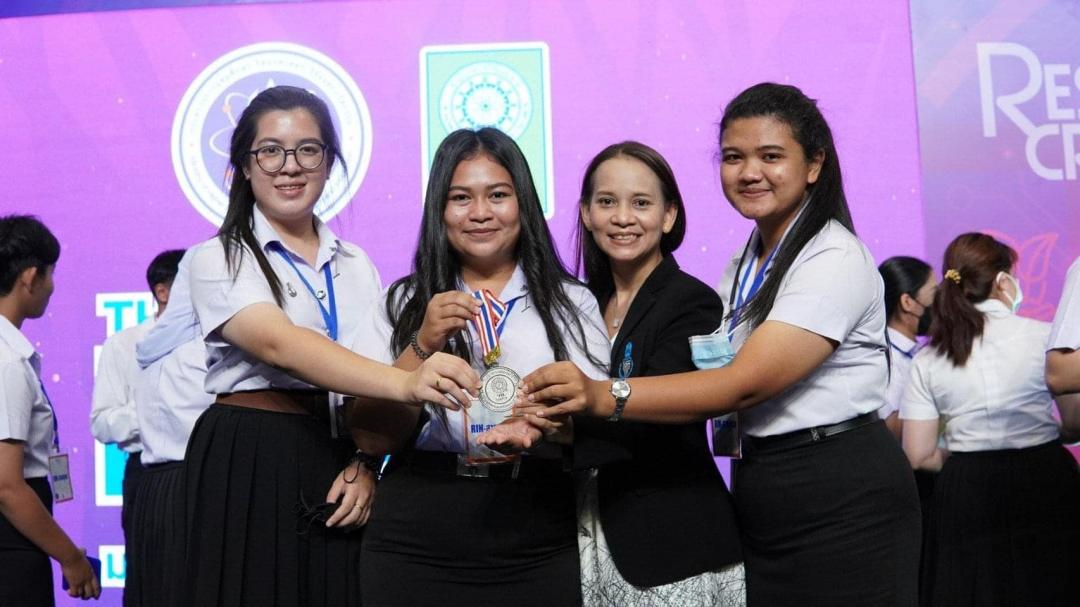 14. รางวัลเหรียญทองแดง (Bronze Medal) พร้อมเกียรติบัตร ผลงานเรื่อง “สื่อการเรียนการสอน เรื่อง ปฎิกิริยาเคมีด้วยชุดทดลองตรวจวัดความเข้มข้นของ CO2 ผ่านแอปพิเคชัน Blynk” โดย น.ส.อัญชิสา ชาสุวรรณ, น.ส.รินรดา รอดบัวทอง นิสิตหลักสูตรร่วมระหว่างคณะวิทยาศาสตร์และคณะศึกษาศาสตร์ โดย ผศ.ดร.ณวงศ์ บุญนาค, ผศ.ดร.ชุติมา แก้วพิบูลย์ เป็นที่ปรึกษาโครงการ