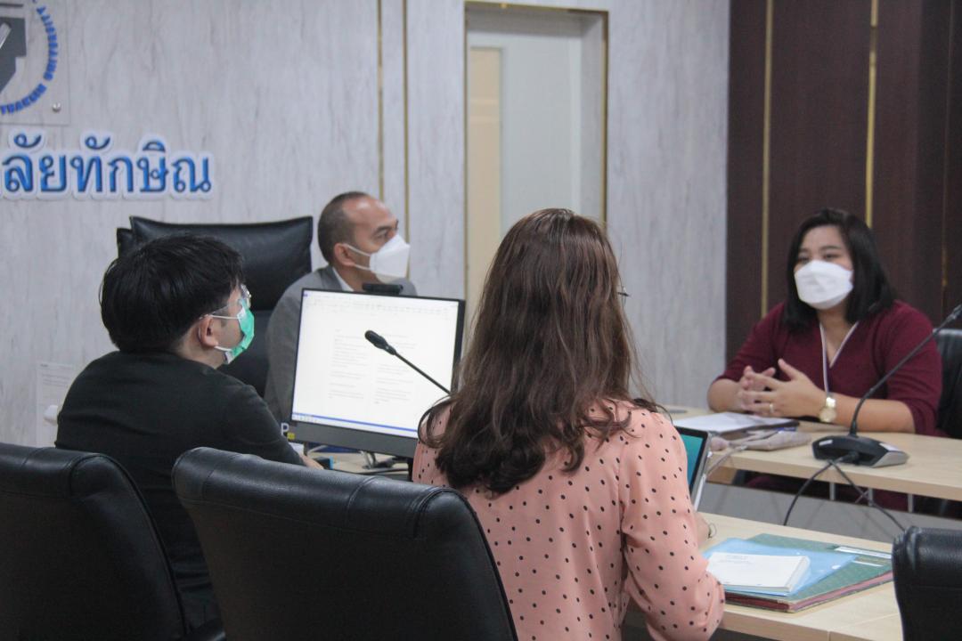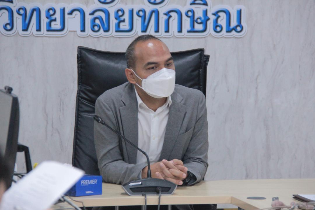 วันที่ 15 สิงหาคม 2565 ศูนย์ภาษา มหาวิทยาลัยทักษิณ จัดพิธีการลงนามบันทึกข้อตกลงความร่วมมือระหว่างศูนย์ภาษา มหาวิทยาลัยทักษิณ กับโรงเรียนสอนภาษาอังกฤษมีฟ้า โดยมี รองศาสตราจารย์ ดร.สมัคร แก้วสุกแสง รักษาการแทนรองอธิการบดีฝ่ายวิจัยและนวัตกรรม กล่าวเปิด ดร.ขวัญจิตต์ สุวรรณนพรัตน์ ผู้รักษาการแทนผู้ช่วยอธิการบดีและหัวหน้างานวิเทศสัมพันธ์ กล่าวรายงานถึงกิจกรรม และนางสาวพัชรวรรลย์ มานะศิริ ผู้อำนวยการโรงเรียนสอนภาษาอังกฤษมีฟ้า กล่าวยินดีในการลงนามบันทึกข้อตกลงความร่วมมือในครั้งนี้ ซึ่งมีผู้แทนจากโรงเรียนสอนภาษาอังกฤษมีฟ้า และบุคลากร มหาวิทยาลัยทักษิณ เข้าร่วม ณ ห้อง 18209 อาคาร 50 ปี วศ มศว มทษ มหาวิทยาลัยทักษิณ วิทยาเขตสงขลา