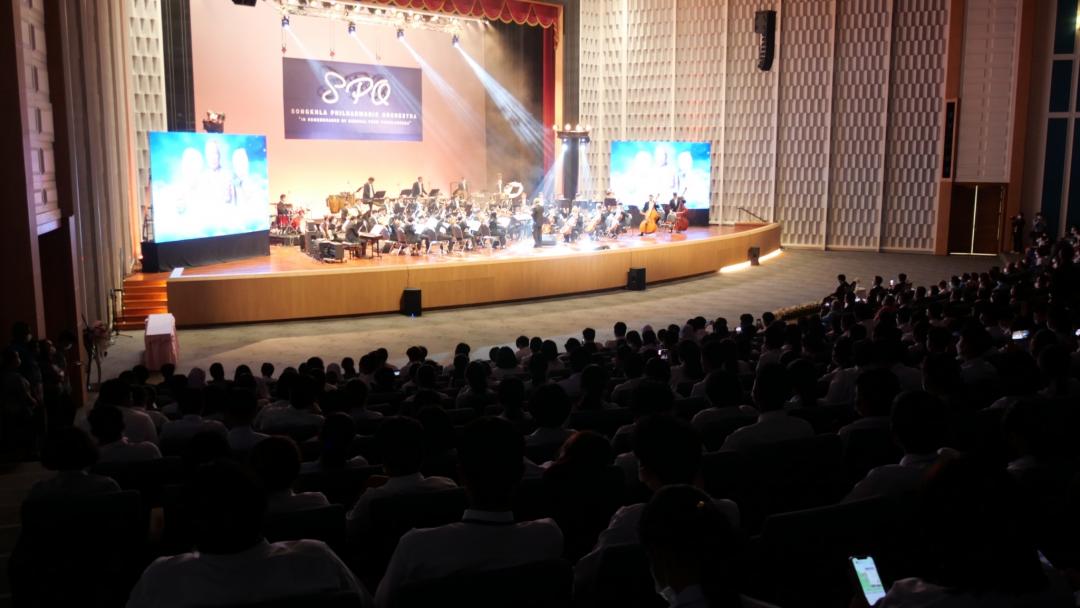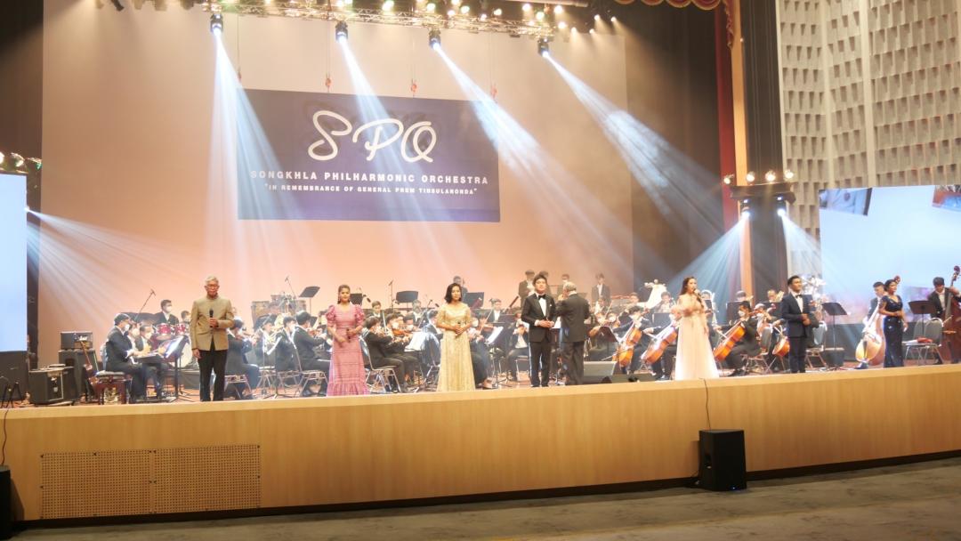 นางสาววีรยา คําศรี นักเรียนชั้นมัธยมศึกษาปีที่ 6 โรงเรียนวรนารีเฉลิม ตัวแทนนักเรียนผู้รับทุนกล่าวขอบคุณ และนํากล่าวคํามั่นสัญญา นายมูฮัมหมัด แวสาและ นักเรียนจากโรงเรียนบากงพิทยา จ.ปัตตานี ตัวแทนเยาวชนสานใจไทย สู่ใจใต้ อ่านเรียงความชนะเลิศ “เกิดมาต้องตอบแทนคุณแผ่นดิน” นายชาญวิทย์ รัตนชาติ เจ้าของสวนเทพหยา ศูนย์เรียนรู้ส่งเสริมคนดีสู่วิถีพอเพียง กล่าวรายงานความดีเพื่อตอบแทนบุญคุณแผ่นดิน ปิดท้ายด้วยการรับชมการแสดงดุริยางค์สากลฟิลฮาโมนิคแห่งสงขลา