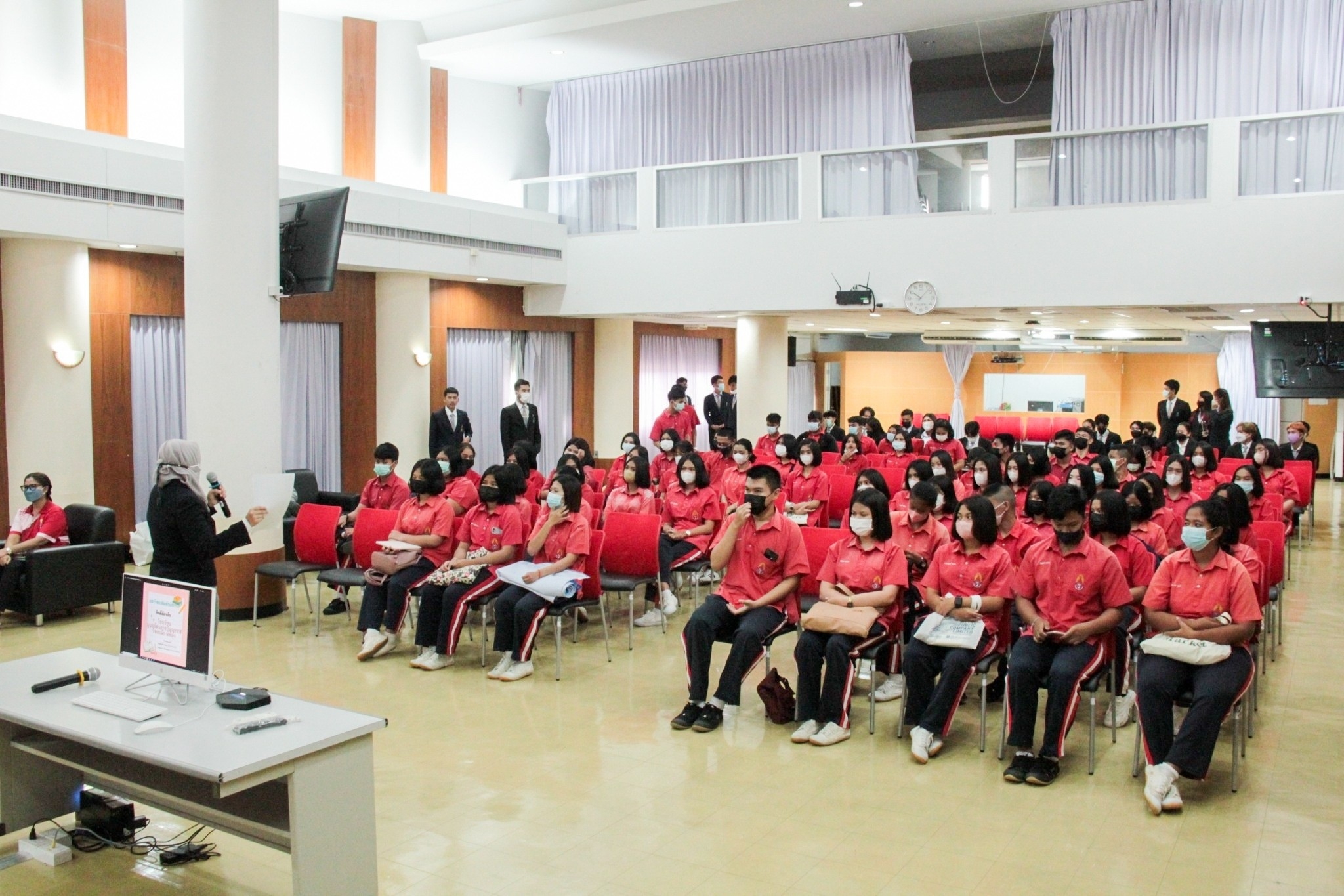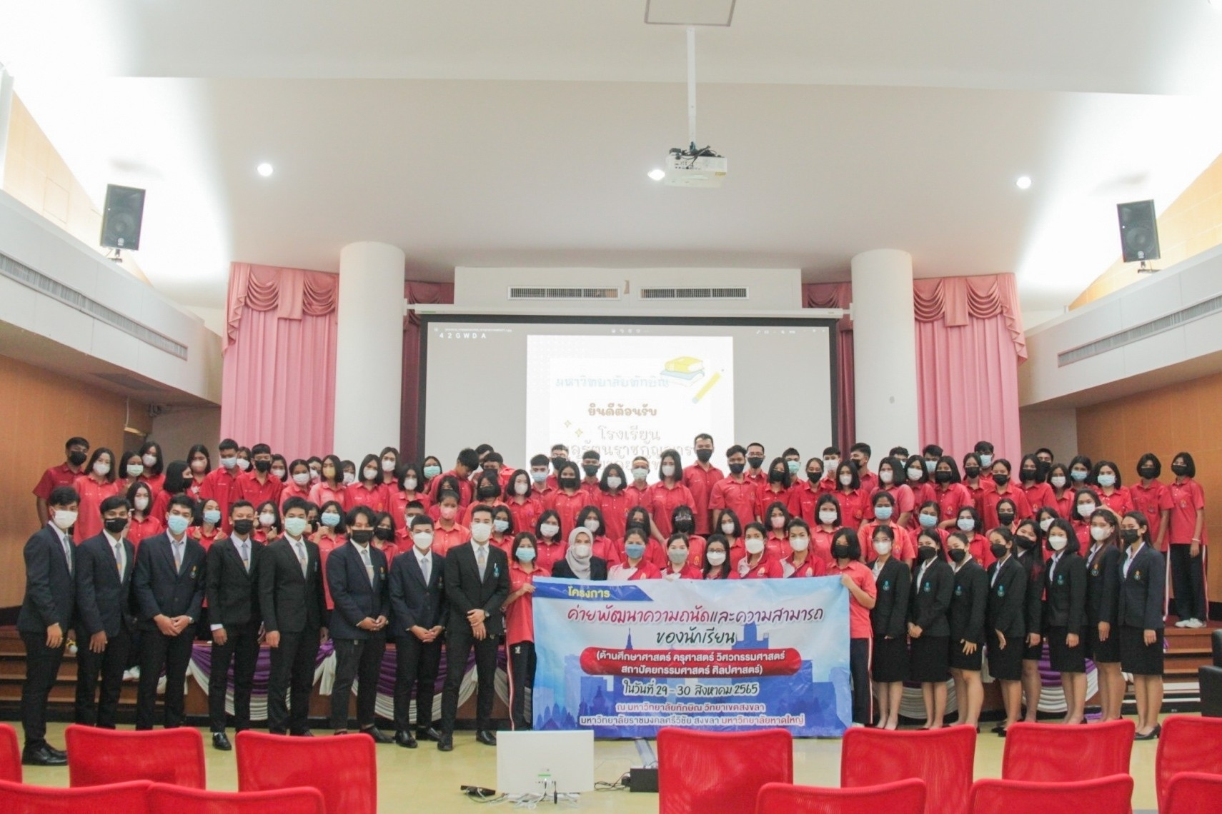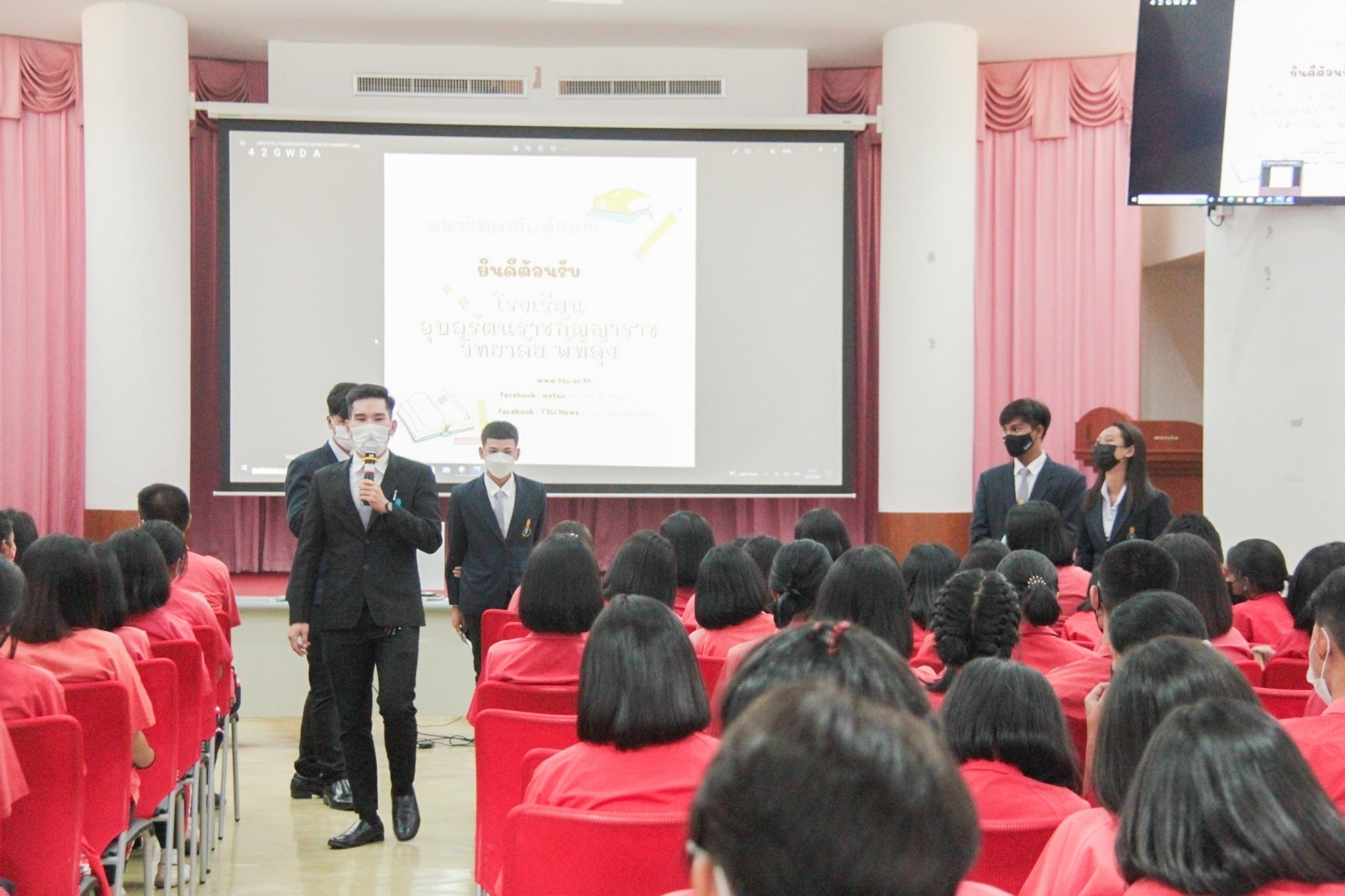 วันที่ 29 สิงหาคม 2565 ผศ.เสริมศักดิ์ ขุนพล รักษาการแทนผู้ช่วยอธิการบดี ฝ่ายสื่อสารองค์กร กล่าวต้อนรับคณะครูและนักเรียนโรงเรียนอุบลรัตนราชกัญญาราชวิทยาลัย พัทลุง ตำบลคูหาสวรรค์ อำเภอเมือง จังหวัดพัทลุง จำนวน 110 คน เพื่อเป็นแนวทางให้กับนักเรียนในการศึกษาต่อในระดับปริญญาตรี ณ สำนักหอสมุด มหาวิทยาลัยทักษิณ วิทยาเขตสงขลา ทั้งนี้ คณะทีมองค์การนิสิต สภานิสิต และสโมสรนิสิต มาร่วมแบ่งปันความรู้และประสบการณ์ของการเรียนและกิจกรรมในมหาวิทยาลัยทักษิณ