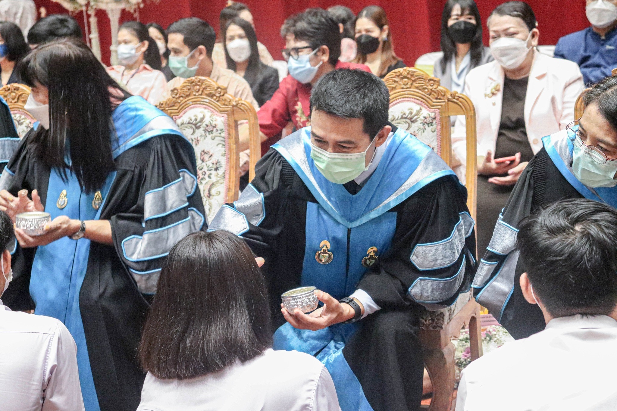 วันที่ 1 กันยายน 2565 รองศาสตราจารย์ ดร.ณฐพงศ์ จิตรนิรัตน์ รักษาการแทนอธิการบดี พร้อมด้วยคณาจารย์ เข้าร่วมกิจกรรมไหว้ครู ประจำปีการศึกษา 2565 จัดโดย องค์การนิสิตมหาวิทยาลัยทักษิณ วิทยาเขตสงขลา ณ หอเปรมดนตรี มหาวิทยาลัยทักษิณ สงขลา การไหว้ครู คือ การที่ศิษย์แสดงความเคารพ ยอมรับนับถือเป็นครูบาอาจารย์อย่างจริงใจว่าท่าน เพียบพร้อมด้วยคุณธรรมความรู้ ศิษย์ในฐานะผู้สืบทอดมรดกทางวิชาการจึงพร้อมใจกันปวารณาตนรับการ ถ่ายทอดวิชาความรู้ด้วยความวิริยะ อุตสาหะ มานะ อดทน เพื่อให้บรรลุเป้าหมายปลายทางของการศึกษา ตามที่ตั้งใจไว้