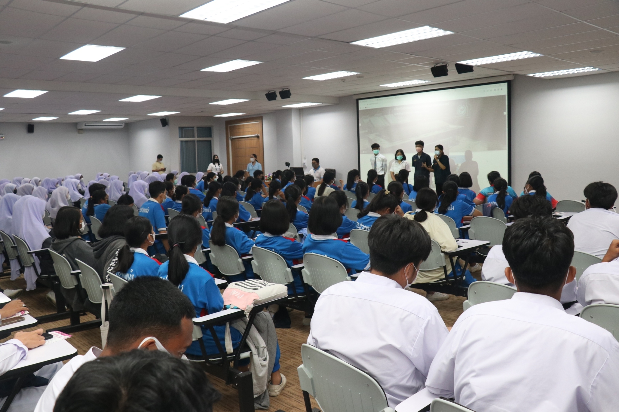 หลังจากนั้นตัวแทนจาก คณะวิศวกรรมศาสตร์ คณะวิทยาการสุขภาพและการกีฬา คณะวิทยาศาสตร์ คณะอุตสาหกรรมเกษตรและชีวภาพ เข้าร่วมประชาสัมพันธ์เกี่ยวกับคณะให้กับ นักเรียนได้ทราบถึงรายละเอียด ของการเรียน การสอน จบไปแล้วสามารถประกอบอาชีพในอนาคต และ ถาม – ตอบประเด็นที่นักเรียนสนใจเรียนต่อในคณะหรือสาขานั้นๆ พร้อมมอบของรางวัลให้นักเรียนที่ร่วมกิจกรรม