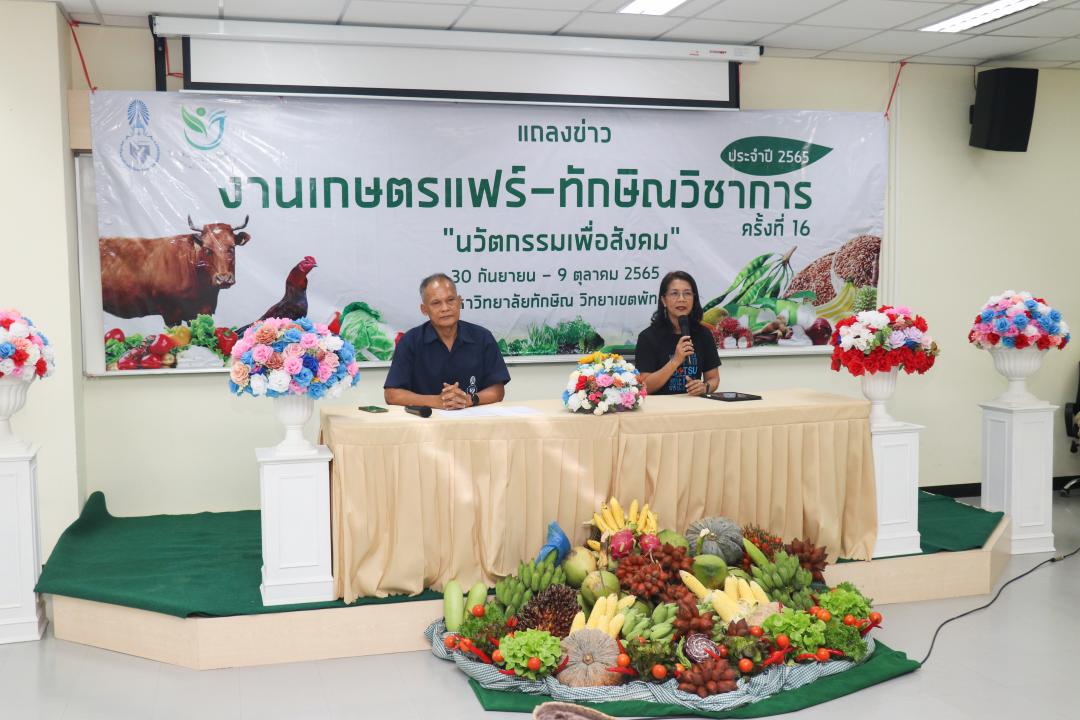 มหาวิทยาลัยทักษิณ วิทยาเขตพัทลุง โดยคณะเทคโนโลยีและการพัฒนาชุมชน เตรียมจัดงานเกษตรแฟร์ ครั้งที่ 16 ประจำปี 2565 ระหว่างวันที่ 30 กันยายน – 9 ตุลาคม 2565 ณ มหาวิทยาลัยทักษิณ วิทยาเขตพัทลุง เพื่อนำเสนอผลงานวิจัยทางวิชาการ และการสาธิตผลิตภัณฑ์ การเรียนรู้ด้านนวัตกรรมใหม่ๆ ผู้ช่วยศาสตราจารย์ ดร. สุรศักดิ์ คชภักดี คณบดีคณะเทคโนโลยีและการพัฒนาชุมชน มหาวิทยาลัยทักษิณ วิทยาเขตพัทลุง เปิดเผยว่า การจัดงานเกษตรแฟร์ ครั้งที่ 16 ประจำปี 2565 ในครั้งนี้ จัดขึ้นภายใต้แนวคิด “นวัตกรรมเพื่อสังคม” ประกอบด้วย