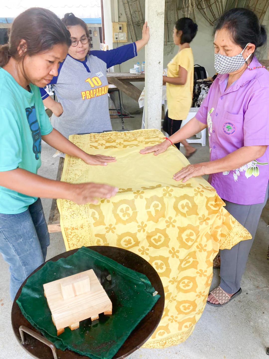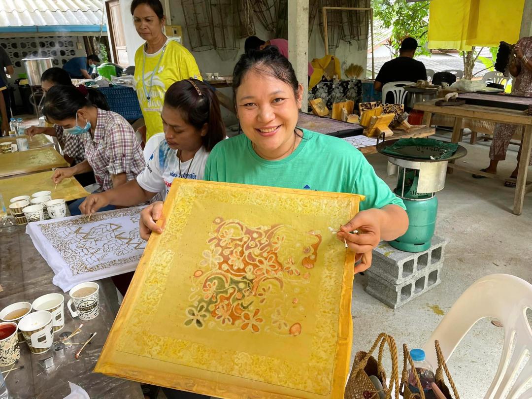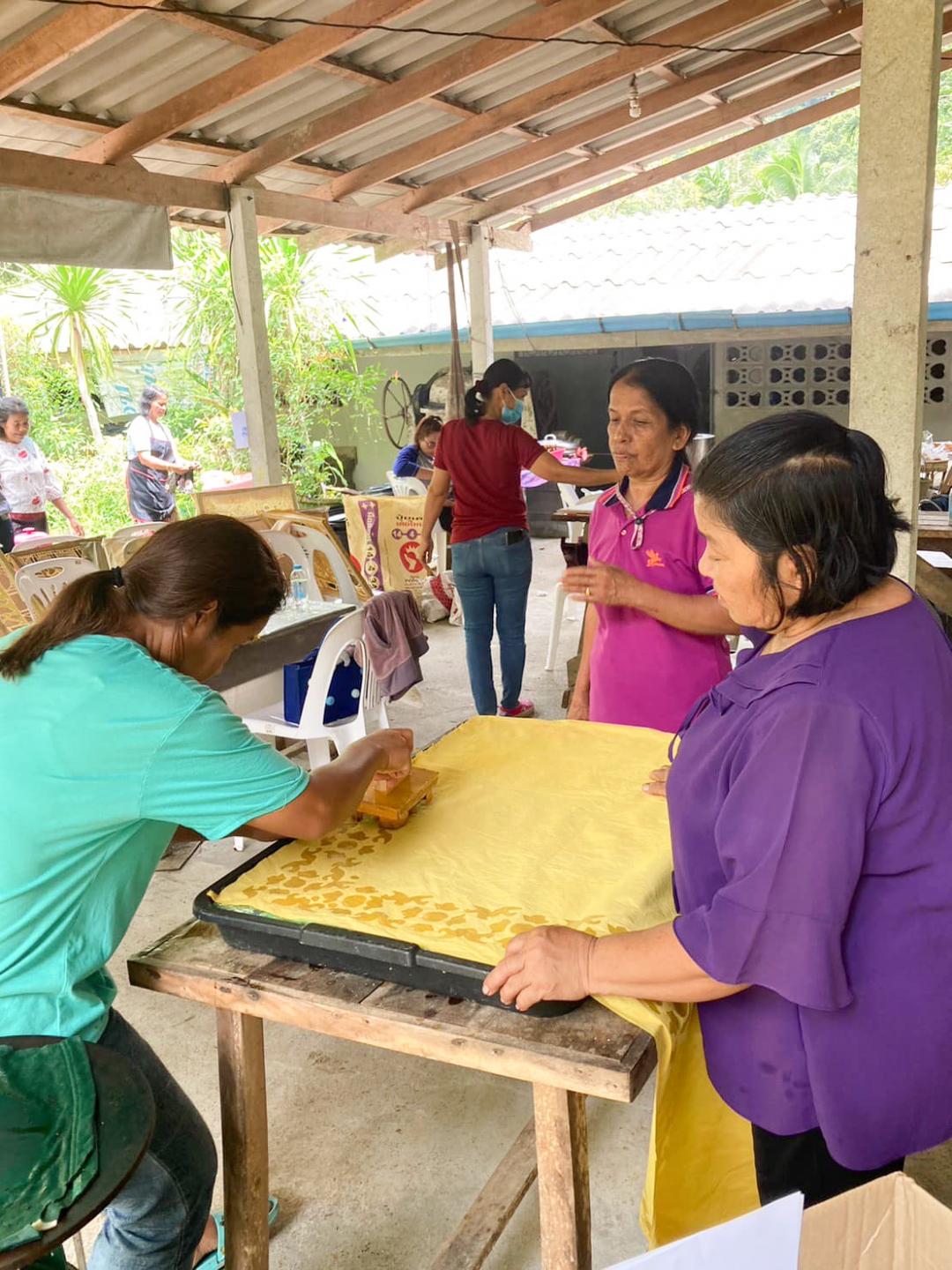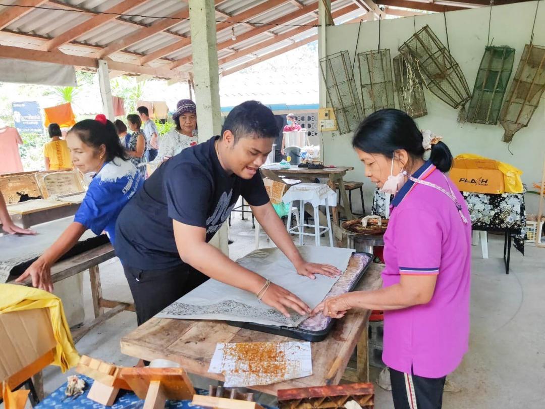ระหว่างวันที่ 14-18 ตุลาคม 2565 คณะทำงานภายใต้ชุดโครงการการวิจัยและนวัตกรรมเพื่อแก้ไขปัญหาความยากจนแบบเบ็ดเสร็จและแม่นยำในจังหวัดพัทลุง ปีที่ 2 โดย อาจารย์ ดร.ทิพย์ทิวา สัมพันธมิตร รักษาการแทนผู้ช่วยอธิการบดีฝ่ายวิจัยและนวัตกรรม มหาวิทยาลัยทักษิณ ได้จัดกิจกรรมอบรมเชิงปฏิบัติการ “ศรีนาคาโมเดล” ณ วิสาหกิจชุมชนบ้านอาหารใต้เบอร์หนึ่ง หมู่ที่ 4 ตำบลบ้านนา อำเภอศรีนครินทร์ จังหวัดพัทลุง และเมื่อวันที่ 17 ตุลาคม 2565 ได้จัดกิจกรรมซึ่งดำเนินงานโดย คณะทีมนักวิจัยโครงการ “โมเดลแก้จนสวัสดิการชุมชนเกื้อกูล : คนเมืองลุงไม่ทอดทิ้งกัน” โดยให้กลุ่มคนเป้าหมายในพื้นที่ได้มีโอกาสพัฒนาทักษะและสร้างกระบวนการเรียนด้านการทำผ้ามัดย้อมและผ้าพิมพ์ลายด้วยสีจากวัสดุธรรมชาติเพื่อเพิ่มทุนทางด้านเศรษฐกิจและสังคม โดยการทำงานแบบ Joint Venture ระดับจังหวัดและพื้นที่ทั้งสำนักงานพัฒนาชุมชน เทศบาลตำบลบ้านนา มหาวิทยาลัยทักษิณ กองทุนสวัสดิการชุมชนตำบลบ้านนาวิสาหกิจชุมชนในพื้นที่ และเครือข่ายการท่องเที่ยว ทั้งนี้หลายภาคีเครือข่ายร่วมผนึกกำลังอย่างมีส่วนร่วมในการขับเคลื่อนที่เน้นการสร้างโอกาสคน สร้างกลุ่ม สร้างพลัง สำหรับกิจกรรมที่จัดขึ้นเป็นการลงมือพิมพ์ลายผ้าแบบทับซ้อนและการแต่งแต้มสีบนลายผ้า เพื่อให้ได้ผลงานผ้าพิมพ์ลายแบบใหม่ ๆ