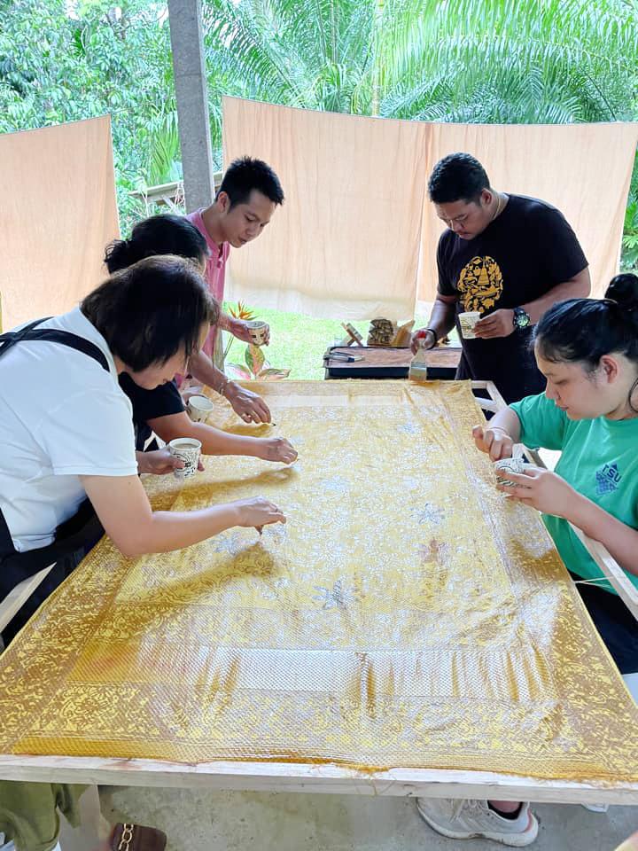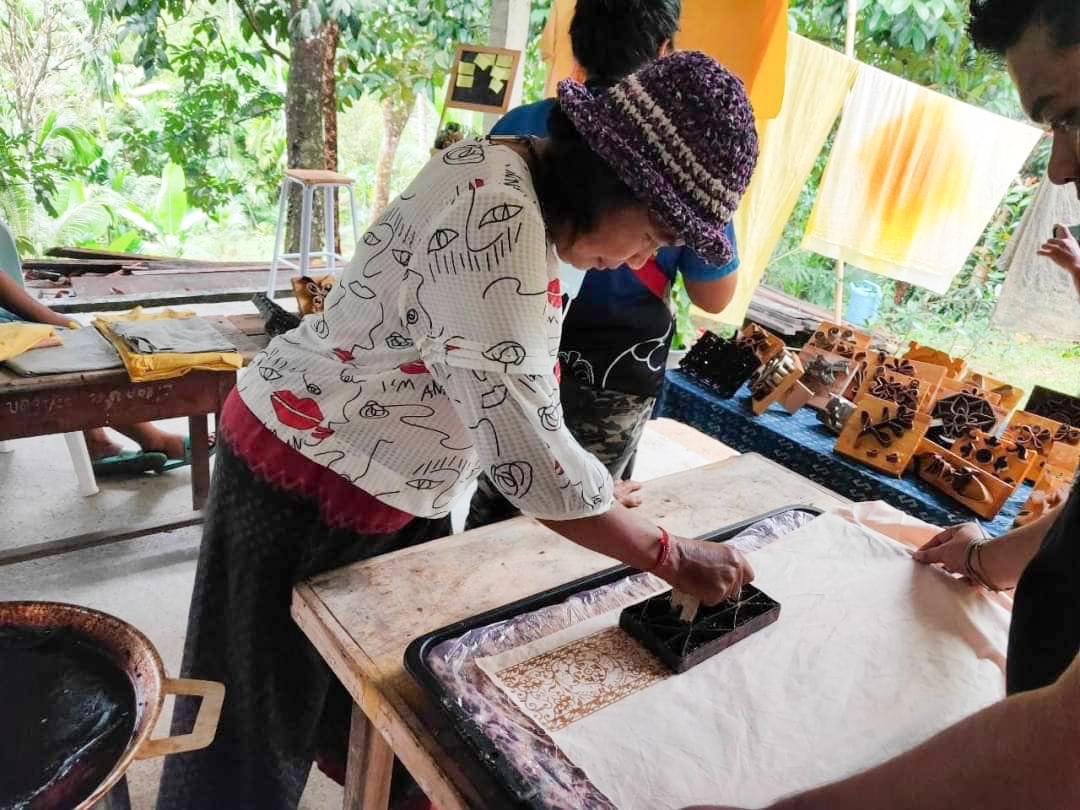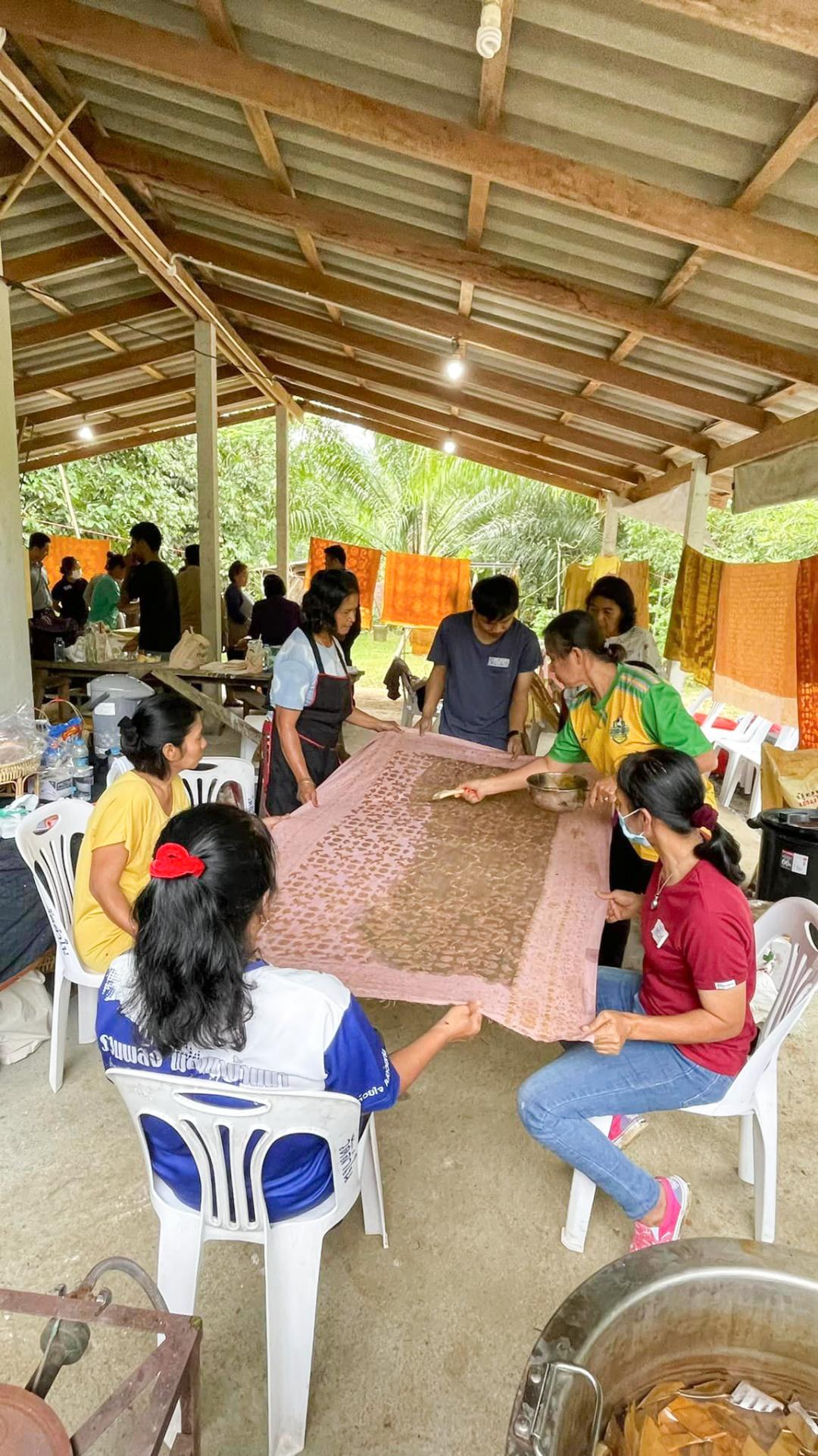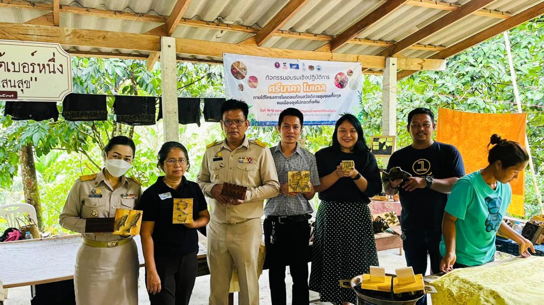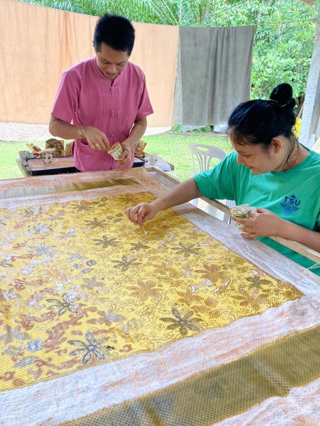 ระหว่างวันที่ 14-18 ตุลาคม 2565 คณะทำงานภายใต้ชุดโครงการการวิจัยและนวัตกรรมเพื่อแก้ไขปัญหาความยากจนแบบเบ็ดเสร็จและแม่นยำในจังหวัดพัทลุง ปีที่ 2 โดย อาจารย์ ดร.ทิพย์ทิวา สัมพันธมิตร รักษาการแทนผู้ช่วยอธิการบดีฝ่ายวิจัยและนวัตกรรม มหาวิทยาลัยทักษิณ ได้จัดกิจกรรมอบรมเชิงปฏิบัติการ “ศรีนาคาโมเดล” ณ วิสาหกิจชุมชนบ้านอาหารใต้เบอร์หนึ่ง หมู่ที่ 4 ตำบลบ้านนา อำเภอศรีนครินทร์ จังหวัดพัทลุง และเมื่อวันที่ 17 ตุลาคม 2565 ได้จัดกิจกรรมซึ่งดำเนินงานโดย คณะทีมนักวิจัยโครงการ “โมเดลแก้จนสวัสดิการชุมชนเกื้อกูล : คนเมืองลุงไม่ทอดทิ้งกัน” โดยให้กลุ่มคนเป้าหมายในพื้นที่ได้มีโอกาสพัฒนาทักษะและสร้างกระบวนการเรียนด้านการทำผ้ามัดย้อมและผ้าพิมพ์ลายด้วยสีจากวัสดุธรรมชาติเพื่อเพิ่มทุนทางด้านเศรษฐกิจและสังคม โดยการทำงานแบบ Joint Venture ระดับจังหวัดและพื้นที่ทั้งสำนักงานพัฒนาชุมชน เทศบาลตำบลบ้านนา มหาวิทยาลัยทักษิณ กองทุนสวัสดิการชุมชนตำบลบ้านนาวิสาหกิจชุมชนในพื้นที่ และเครือข่ายการท่องเที่ยว ทั้งนี้หลายภาคีเครือข่ายร่วมผนึกกำลังอย่างมีส่วนร่วมในการขับเคลื่อนที่เน้นการสร้างโอกาสคน สร้างกลุ่ม สร้างพลัง สำหรับกิจกรรมที่จัดขึ้นเป็นการลงมือพิมพ์ลายผ้าแบบทับซ้อนและการแต่งแต้มสีบนลายผ้า เพื่อให้ได้ผลงานผ้าพิมพ์ลายแบบใหม่ ๆ