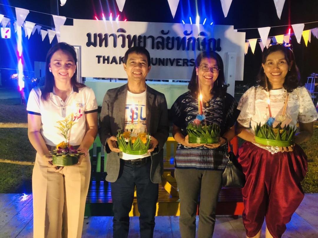 วันที่ 8 พฤศจิกายน 2565 มหาวิทยาลัยทักษิณ ร่วมกับหน่วยงานส่วนต่างๆ ภายในมหาวิทยาลัย สนับสนุน ส่งเสริมประเพณีลอยกระทง ฝ่ายบริหารวิทยาเขตพัทลุง โดยรองศาสตราจารย์ ดร.ณฐพงศ์ จิตรนิรัตน์ รักษาการแทนอธิการบดีมหาวิทยาลัยทักษิณ พร้อมด้วย ผู้ช่วยศาสตราจารย์ ดร.ธัญญา พันธ์ฤทธิ์ดำ รักษาการแทนรองอธิการบดี ฝ่ายพัฒนาระบบนิเวศและโครงสร้างพื้นฐาน พัทลุง บุคลากร นิสิต และประชาชนทั่วไปร่วมลอยกระทง ณ ริมคลองชลประทาน มหาวิทยาลัยทักษิณ วิทยาเขตพัทลุง